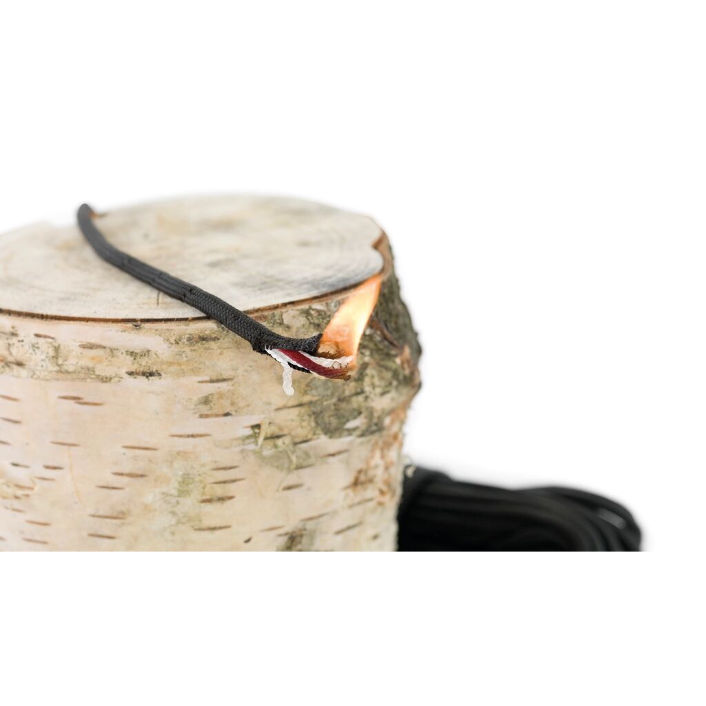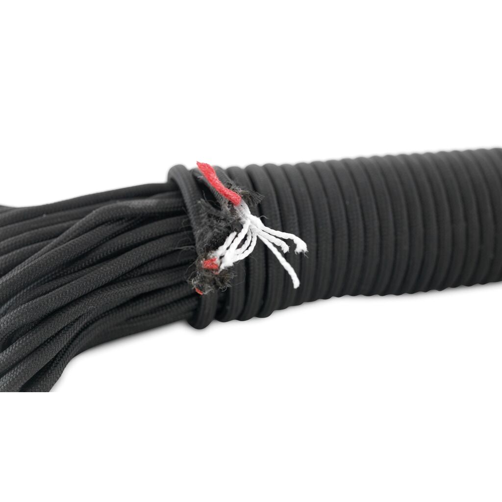 Paracord (Fallschirmleine) ist eine extrem starke Schnur, die für fast alles verwendet werden kann. Sie hat eine strapazierfähige schützende Außenhülle. Die geflochtenen Innenfäden können als Angelschnur, zum Nähen in einer Notsituation, als Hundeleine, zum Schnüren von Stiefeln oder für andere Notlösungen verwendet werden. Der rote Kernfaden kann als Zündmaterial verwendet werden.