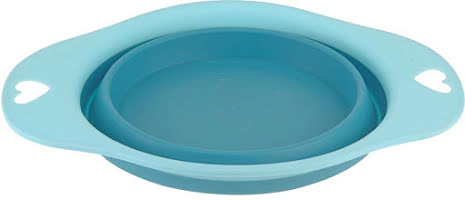 Sammanleggbar hundeskål i silikon med liten pakkestørrelse.