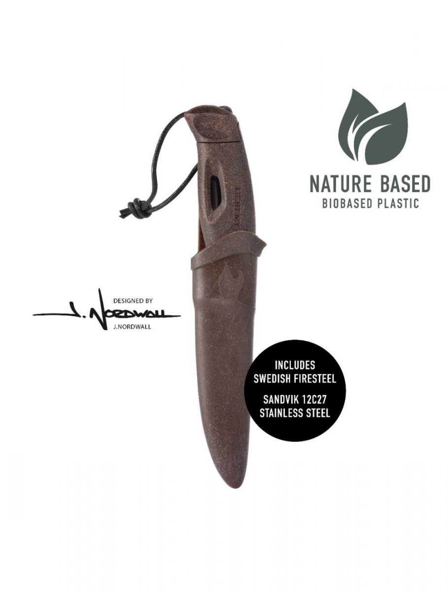 Light My Fire FireKnife är en allroundkniv som fungerer for alle typer friluftsaktiviteter, fra fisketuren til å lage bål under campingturen. Kniven är produsert i Sverige der håndtaket är laget av bioplast basert på kokosfiber og det höyytelsesbladet är til 90% resirkulert rustfritt stål fra Sandvik. I tillegg til å være en skikkelig skarp og grepvennlig kniv, har den et ildstål innebygd i håndtaket. Ildstålet fungerer i alle vær uansett højde og kan brukes til å tenne bål og campingkjøkken. Ildstålet gir virkelig gode gnister, noe som gjør det lettere å tenne bålet enn mange andre merker på markedet.