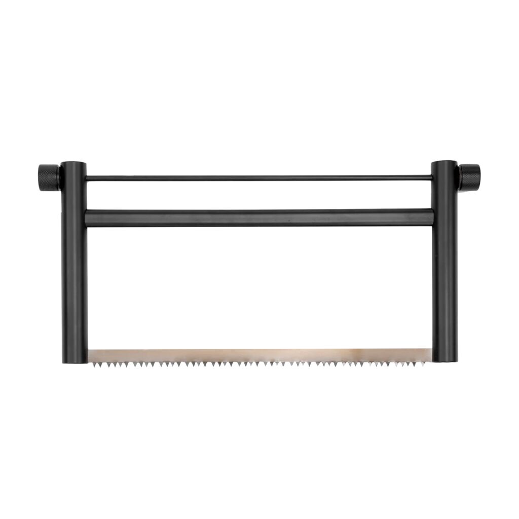 Slitesterk sag i rustfritt stål og aluminium som fungerer godt på tre. Enkel å montere og lett å bruke.