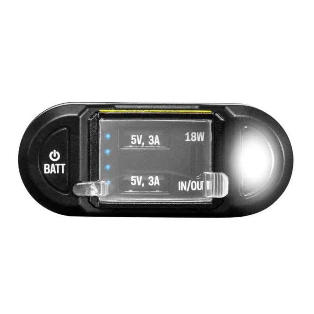 Lad den hjemme eller i bilen via et 2,4A USB (4 timer) eller 18W USB-C uttak (3 timer)