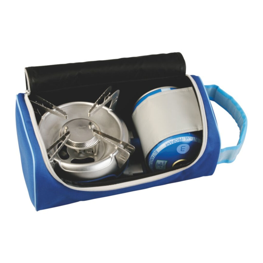 Stabilt gasskøk med avtagbare ben, liten pakkestørrelse og piezotenn. Bærepåse inngår for oppbevaring og transport av gasskøk samt gass. Perfekt for camping eller leiren.