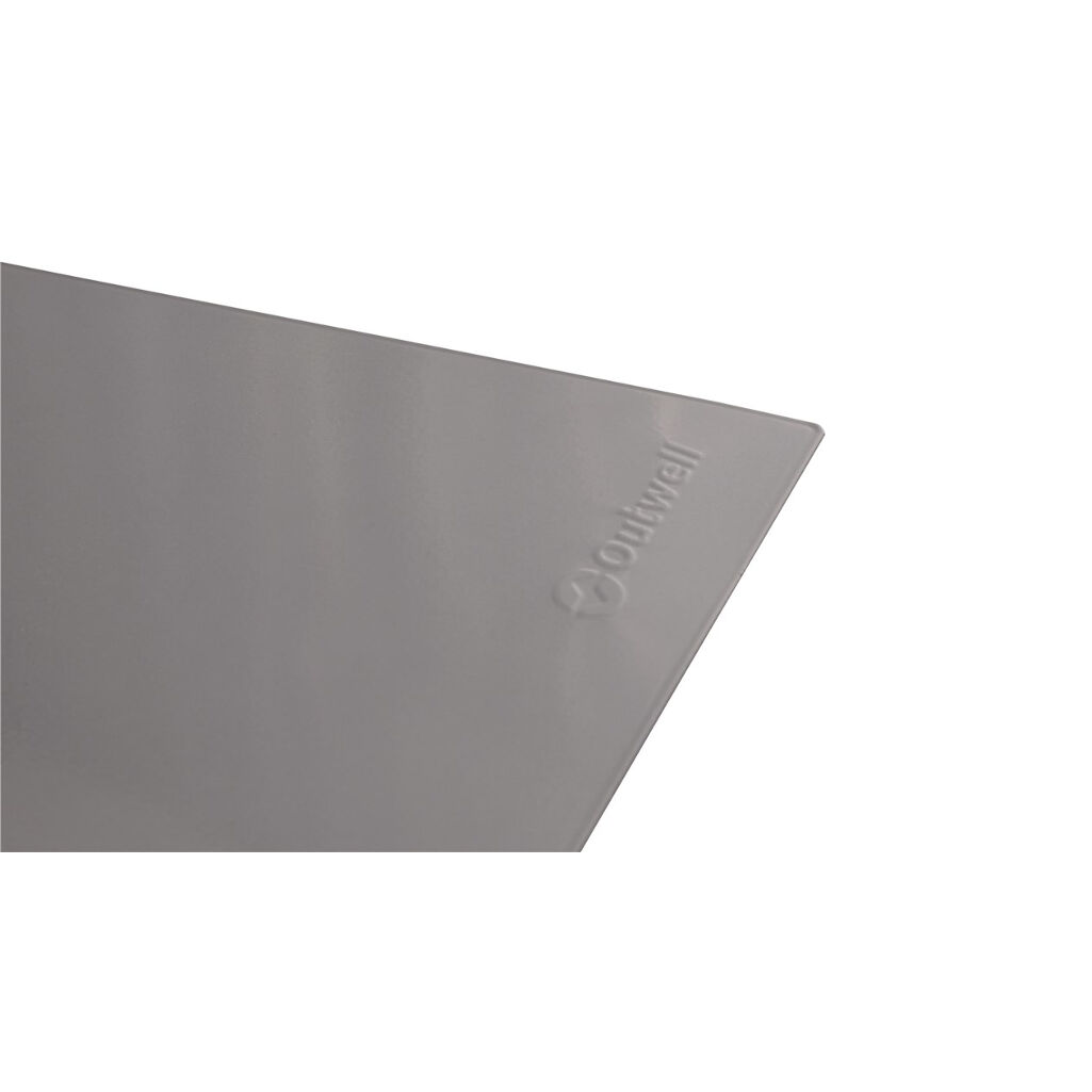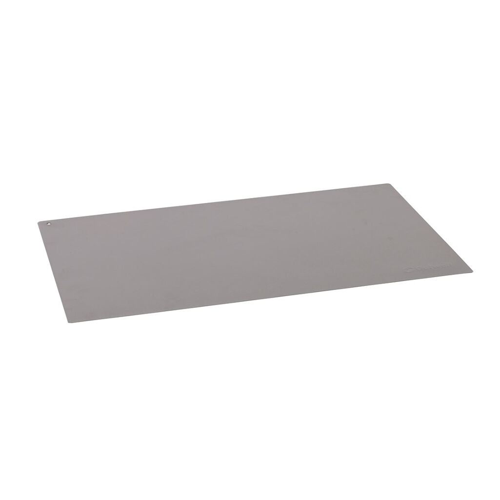 Overflatebehandlet metallplate som beskytter bordplaten mot varmeskader fra campingkjøkken.
