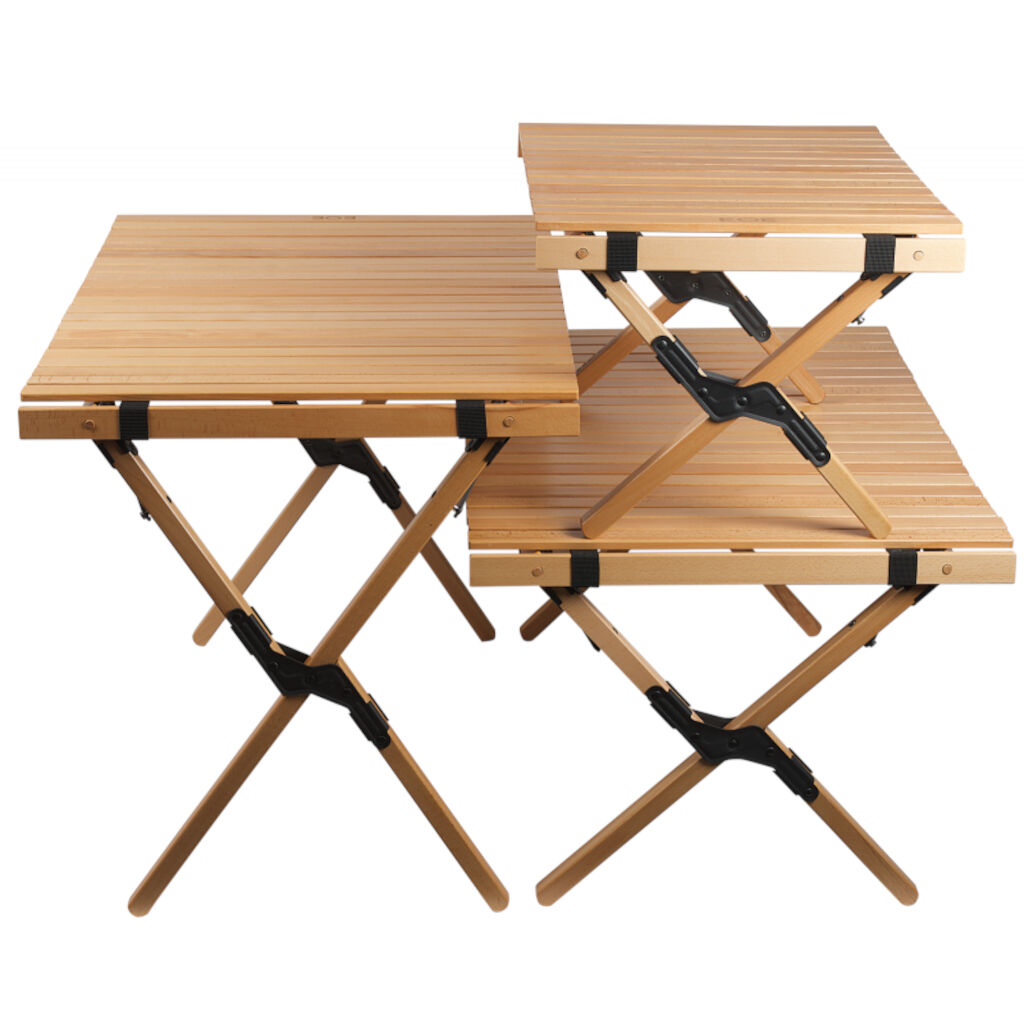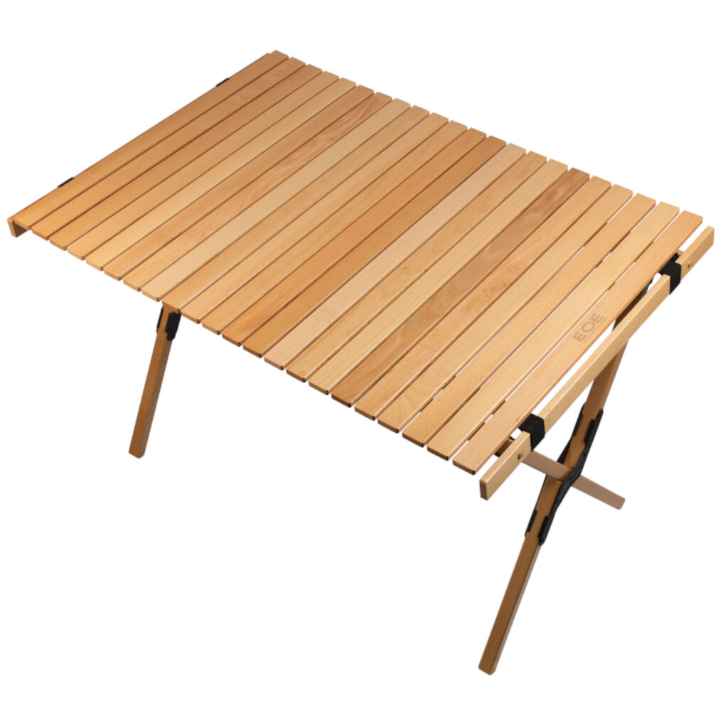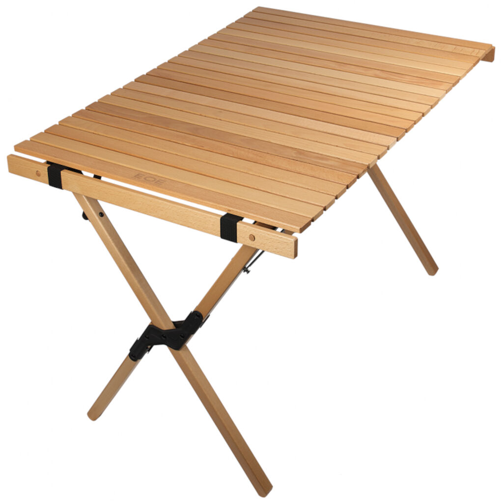 Stilig, stabil og solid campingbord hvis ramme og rullende bordplate är laget av massiv bøk. Bordet monteres på noen sekunder og leveres med en bärväska med håndtak for enkel oppbevaring og transport.