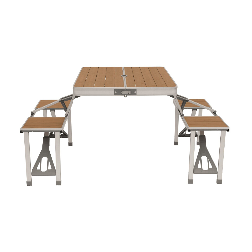 Sammenleggbart piknikbord for fire personer med bordplate og seter i bambus. Enkelt å slå opp og ned, og svært stabilt. Bordet er lett å bære takket være lav vekt og innebygd bærehåndtak.