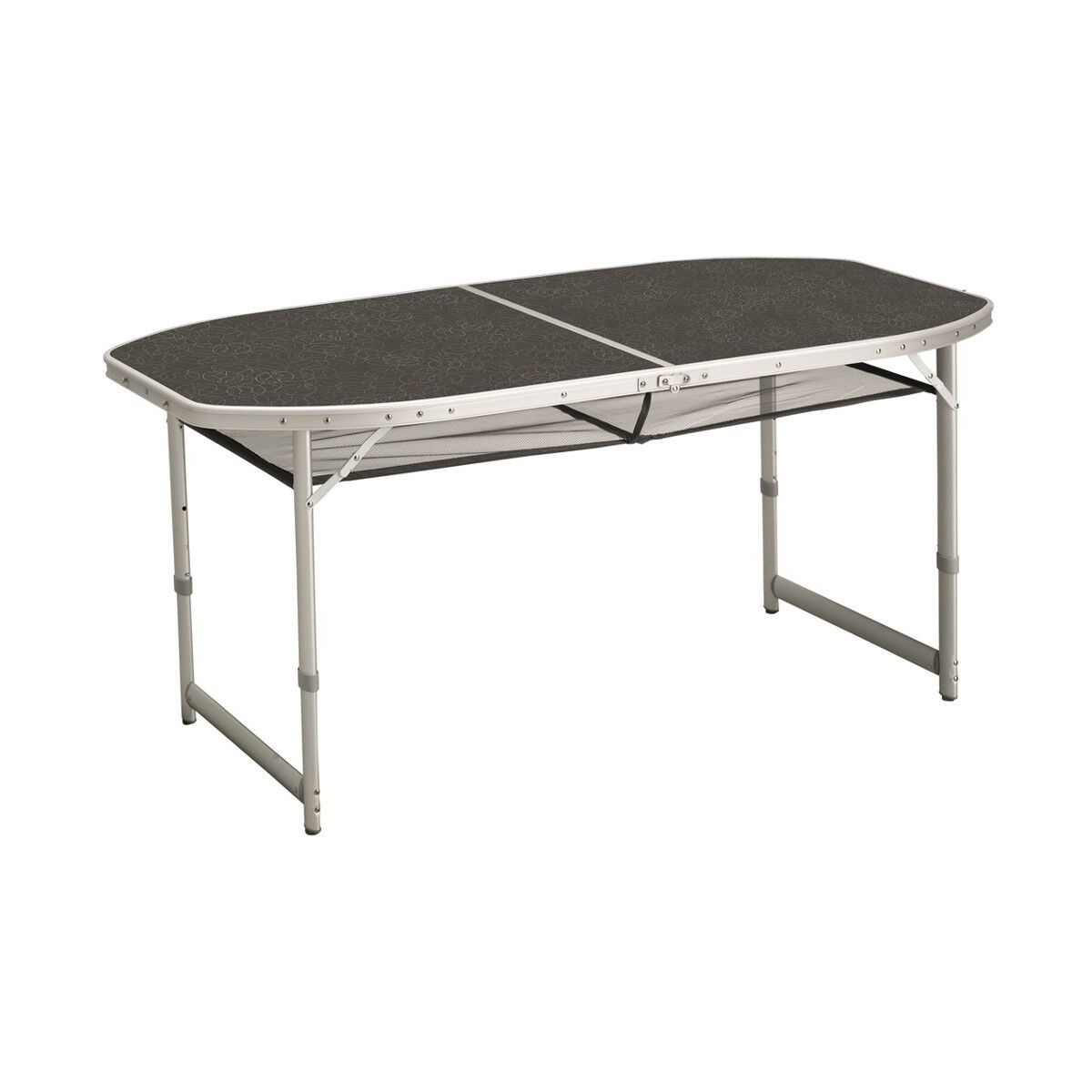 Et solid campingbord med fullt justerbare ben og tre høydeinnstillinger (43, 65 eller 70 cm). Rask montering (demontering) samt fire justerbare ben. Et praktisk bærehåndtak gjør det veldig enkelt å håndtere. Bordet har også en netthylle under bordplaten.