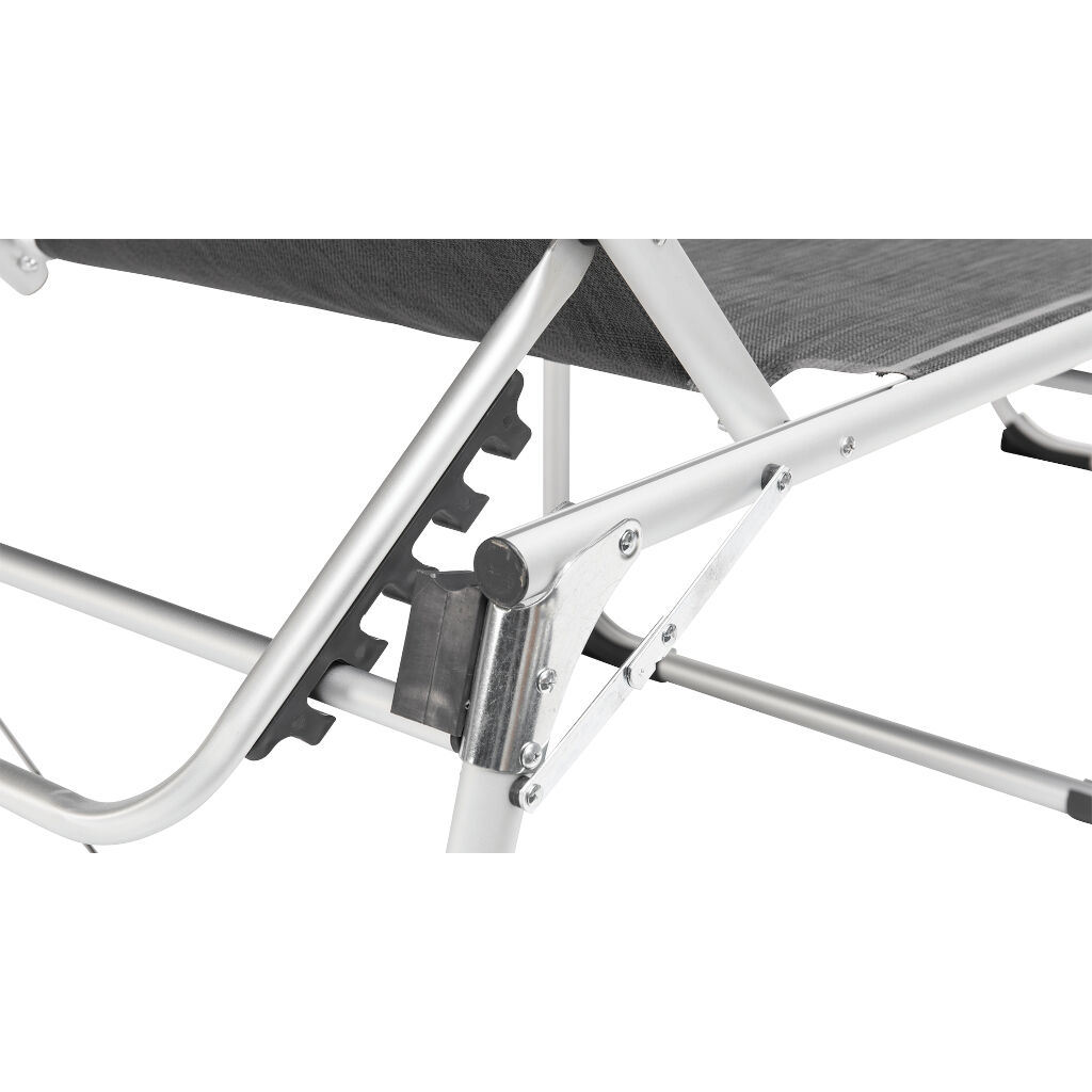 Solid solseng med aluminiumsramme og slitesterkt polyestertrekk, designet med 3D-mesh og hurtigtørkende polstring. Ryggstøtten kan justeres i 5 posisjoner. Avtakbar pute følger med.