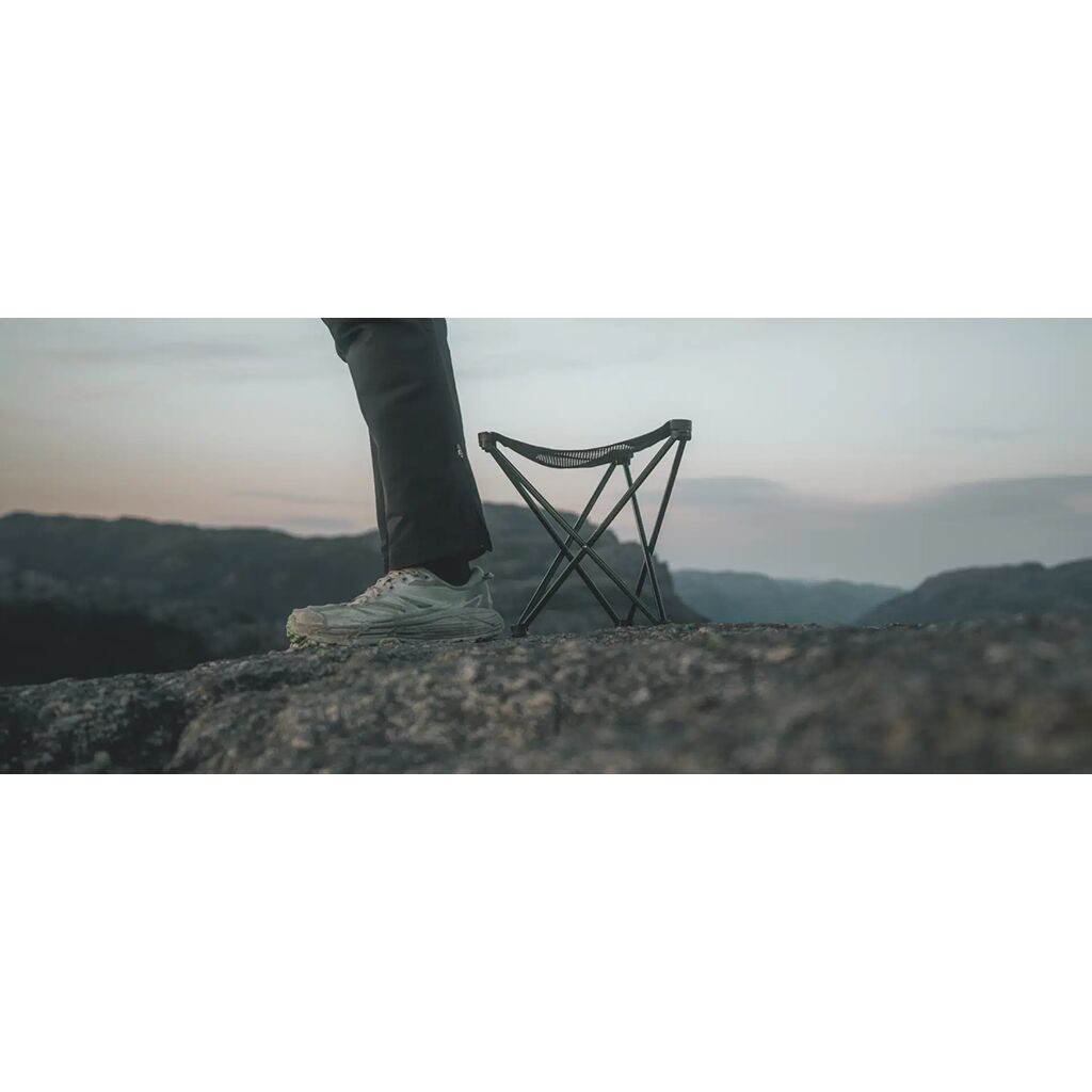 Ekstremt pakkvennlig pall. Til tross for sin størrelse har den en sittehøyde på 33 cm, noe som gjør at man kan sitte en lengre stund på den. Tålig aluminiumsramme og kraftig sete i Oxford polyester.