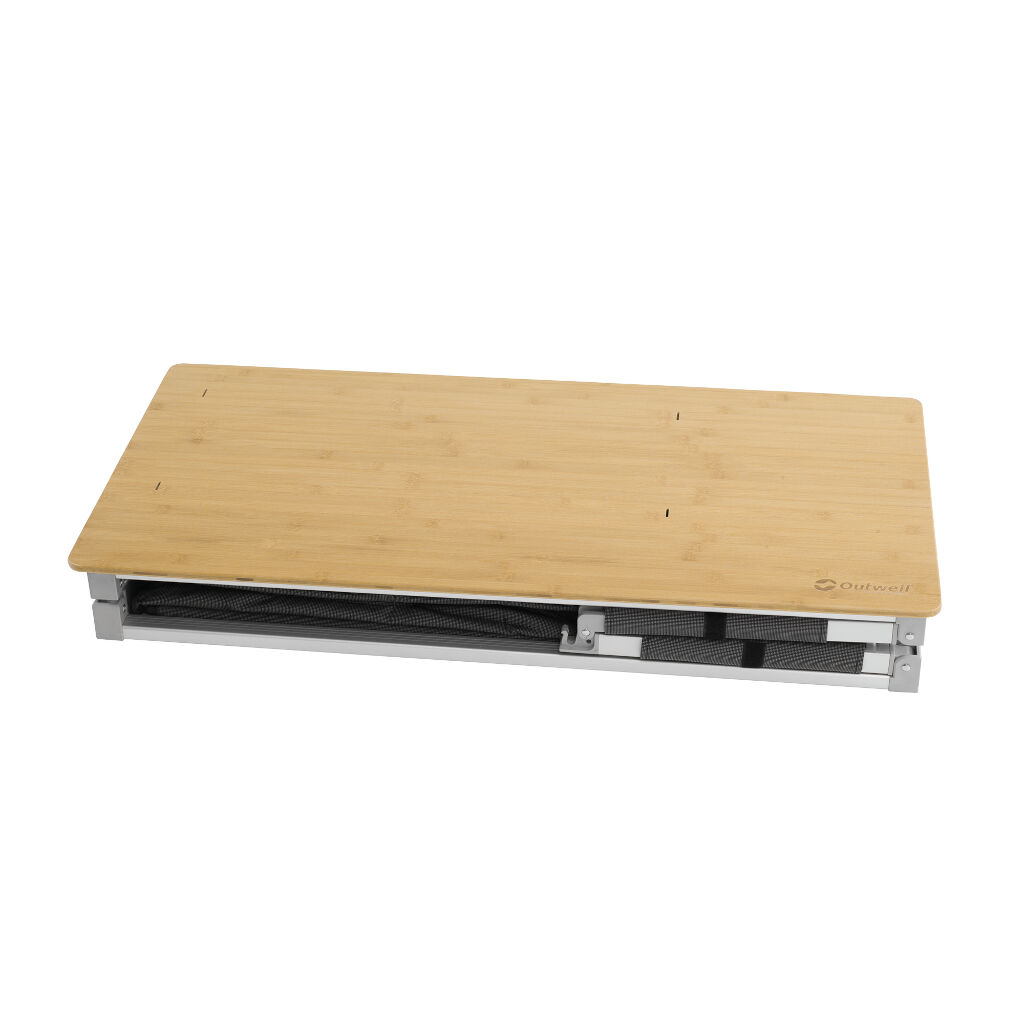 En av de viktigste bekvemmelighetene i teltlivet er å få til en smidig matlaging og oppbevaring av kjøkkenutstyr. Takket være benken som brettes ut i ett stykke, er det raskt å sette opp Outwell Padres XL. God plass til en campingskomfyr med for eksempel varmefordelingsplate og vindbeskyttelse (tilbehør) eller bare en god og stor bambus arbeidsflate, som gjør matlagingen enklere på campingplassen. Fordelen med bambusflater er ikke bare at de ser bra ut, men også at bambus er slitesterkt, varmebestandig og motstandsdyktig mot flekker.