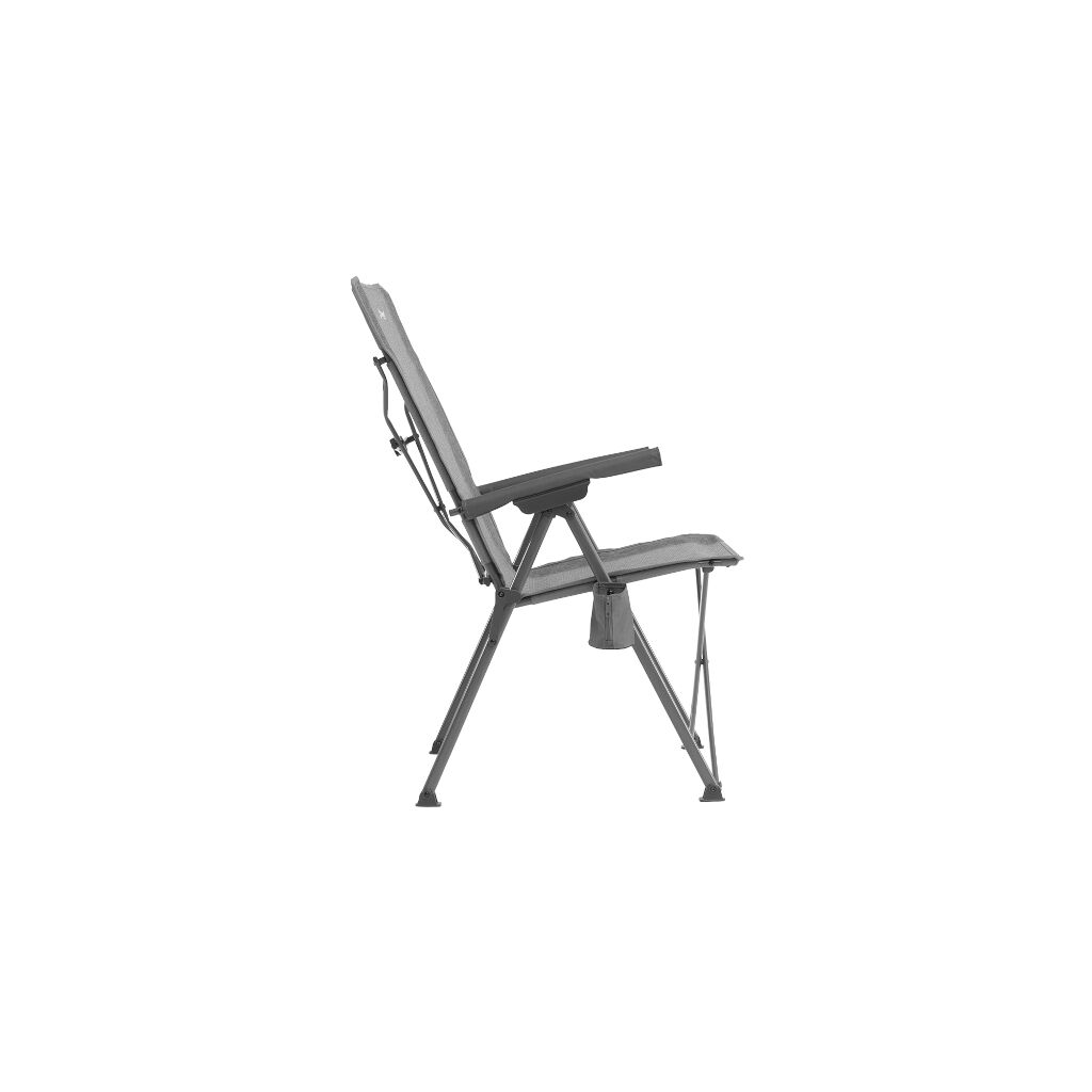 Sammenleggbar campingstol med høy rygg, fire justerbare posisjoner og integrert koppholder. Stoffet i slitesterkt Duraflexi-vev gir god ventilasjon og komfort. Enkel å bære og krever ingen montering.