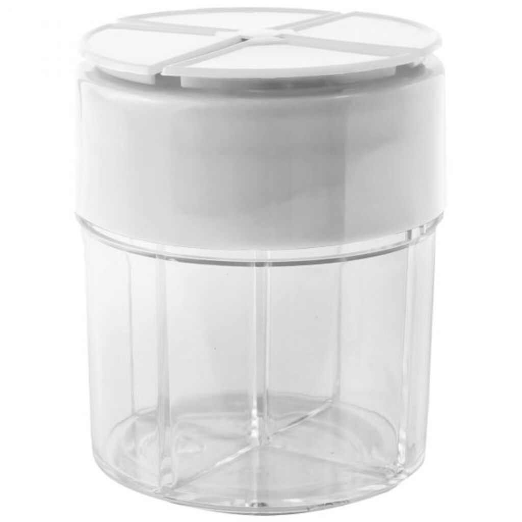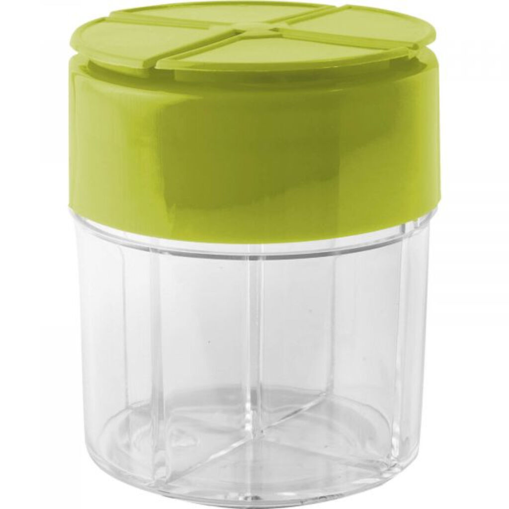 Praktisk oppbevaring av krydder under campingturen. Laget av høykvalitets plast med fire separate rom som rommer 50 ml hver. Lokket tetter godt slik at verken luft eller krydder lekker inn eller ut.