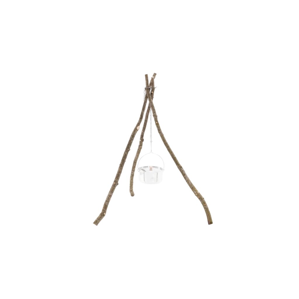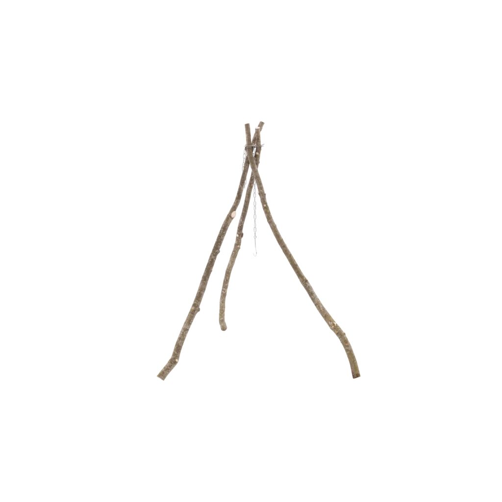 Sett inn 3 pinner fra naturen i adapteren og bøy ut bena, så har du en hjemmelaget tripod klar for matlaging over åpen ild. Til adapteren følger det med en kjede som gjør at du kan justere temperaturen/høyden over ilden. En enkel og praktisk måte å lage din egen tripod på.