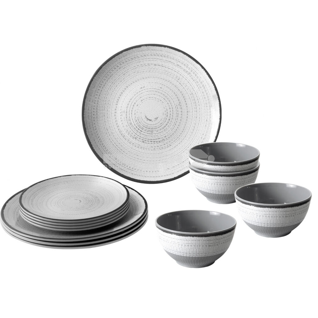 Servise for fire personer i Melamin med anti-skli på undersiden. Lett og holdbart gjør at det passer veldig bra for camping.