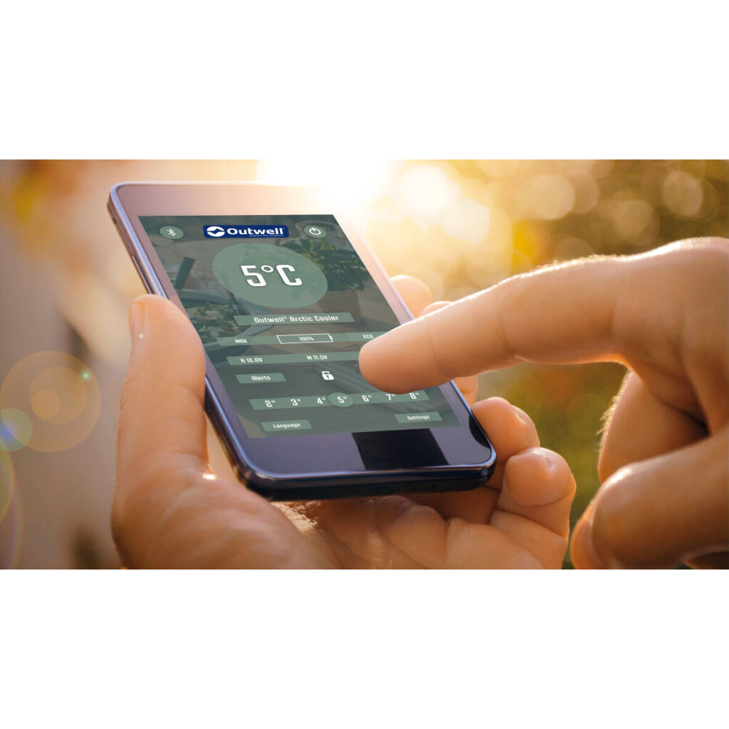 Ønsket temperatur stilles enkelt inn via displayet eller en app som hjelper deg med å overvåke temperaturen. Kjøleboksen er designet for camping og friluftsliv og er ekstra robust med et polstret lokk som kan brukes som en krakk (opptil 125 kg).