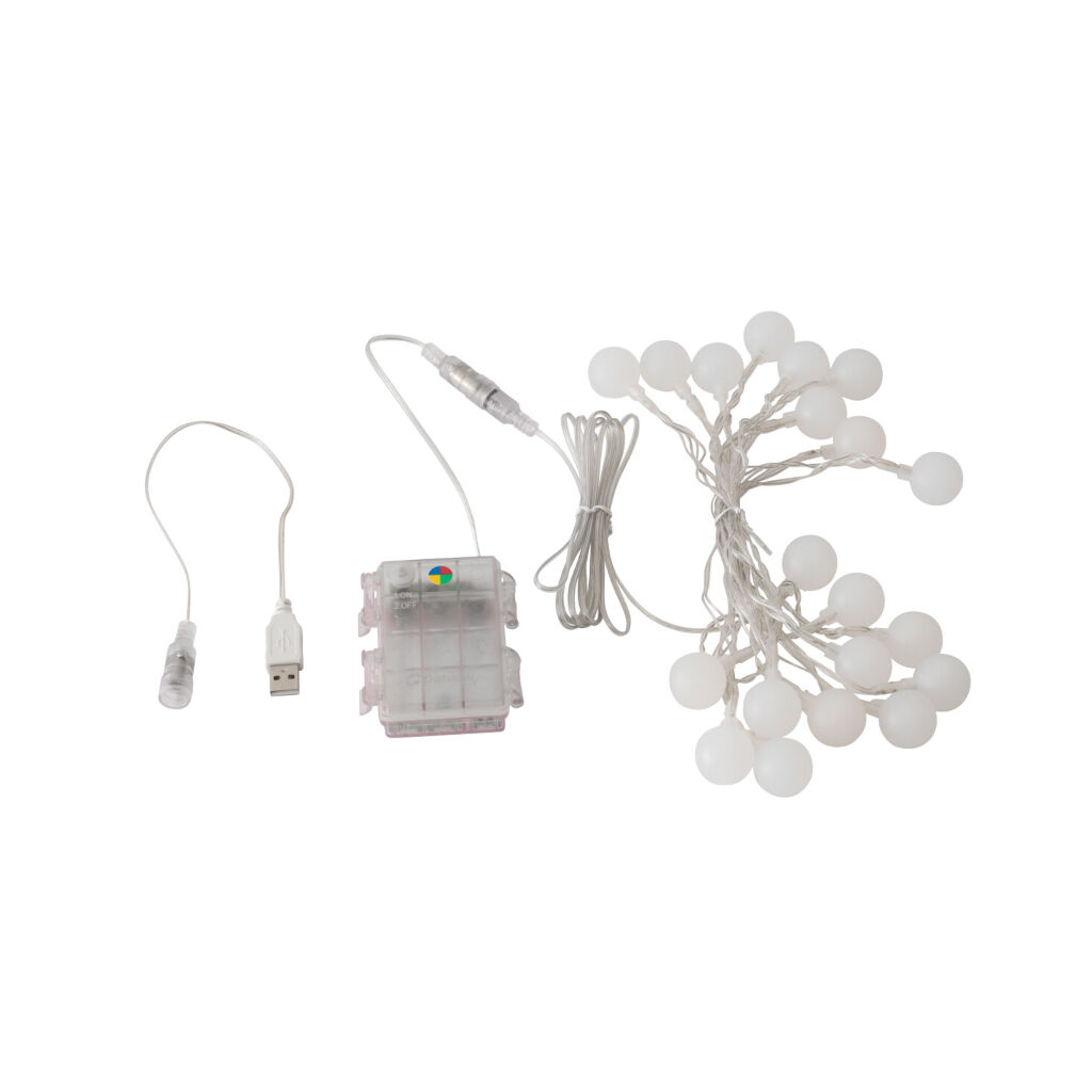 Fin LED-ljusslynge fra Outwell med glade farger som kan brukes både innendørs og utendørs. Lyskjeden kan drives via USB eller 3 x AA-batterier.