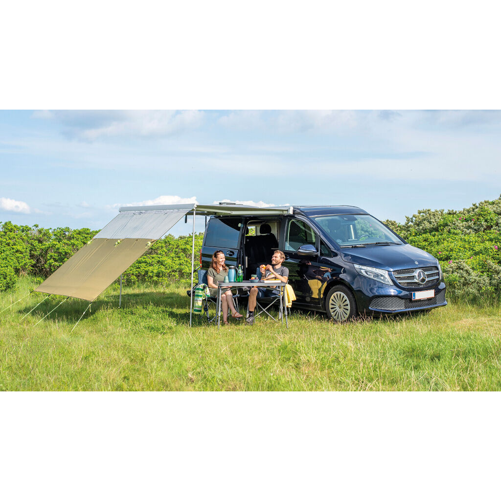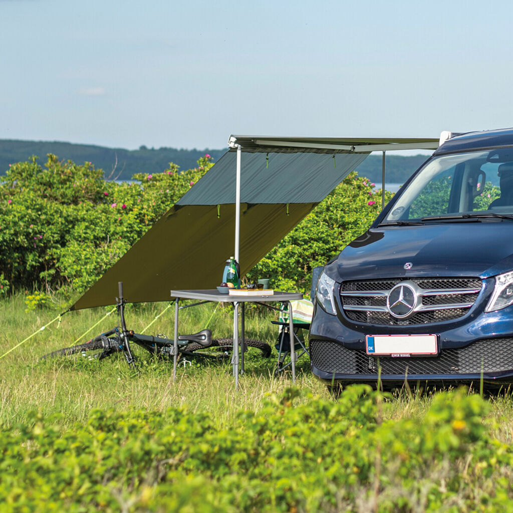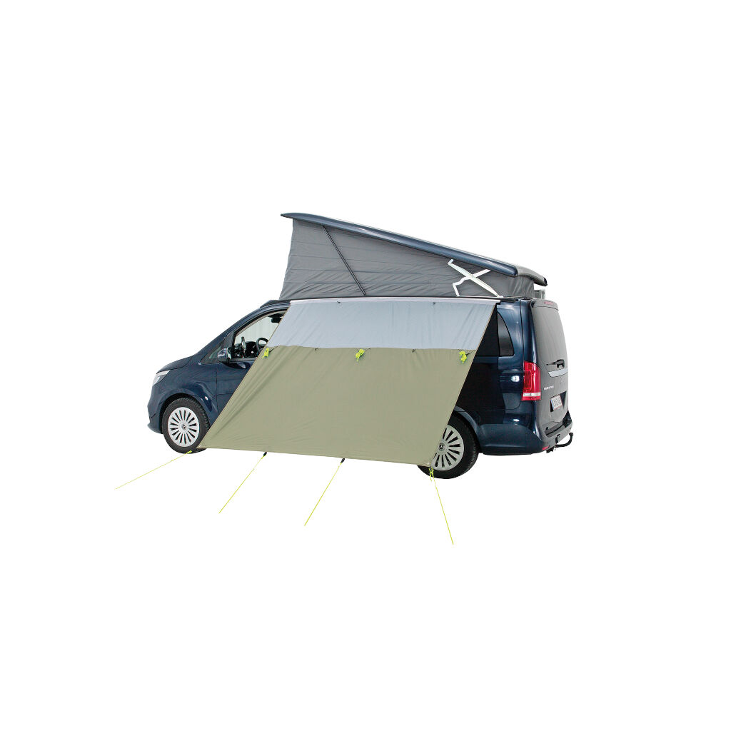 Hillcrest Tarp er et praktisk og fleksibelt solskjerm som gir beskyttelse, skygge og privatliv under reisen. Det kan enkelt monteres på fronten av markisen eller bilens kederlist og sikres med stormliner og planker. Tarpen kan brukes for å lage et beskyttet oppholdsrom ved bilens dør eller for å gi skygge på den andre siden. Med robuste øyer kan det strammes opp med stenger eller rulles opp for beskyttelse mot vær og vind. For ekstra privatliv kan det kompletteres med Fallcrest Side Panel Set.