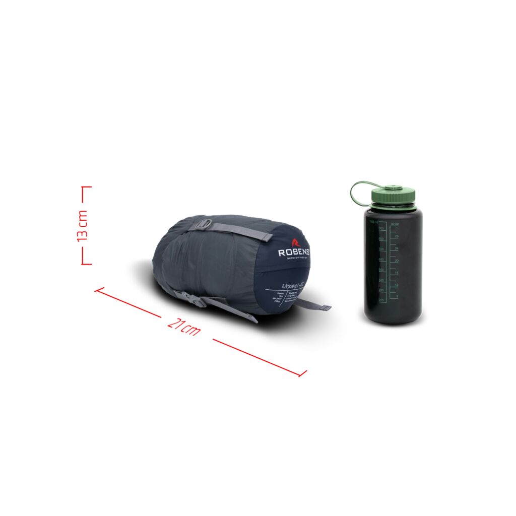 Robens Moraine I er en sovepose hvis vekt, komfort og lille pakkestørrelse gjør den perfekt for sommervandringer. Soveposen bruker 1-lags isolasjon som kombinert med fyllingen (MicroThermo) gir langvarig isolasjon, høy komfort og liten pakkestørrelse (21 x 13 cm). Soveposen har ekstra plass i fotenden, er ekstra bred og mumieformet, noe som gjør at du enklere kan bevege deg i soveposen. Soveposen kan også åpnes helt og brukes som et teppe.