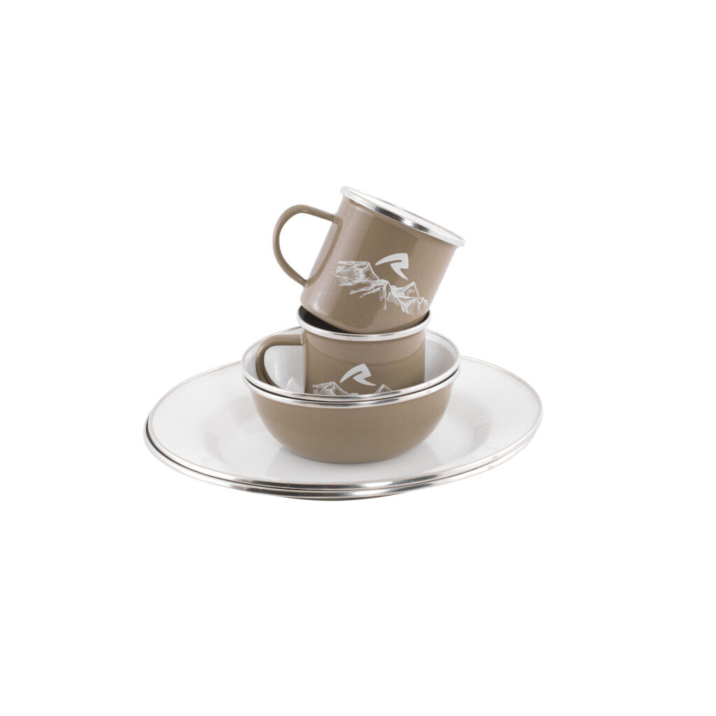 Matsett i emaljert stål for én person. Emaljert stål gir en overlegen holdbarhet. Alle deler tåler å vaskes i oppvaskmaskin.