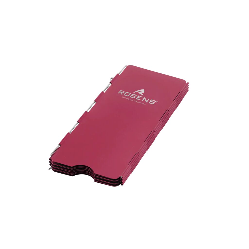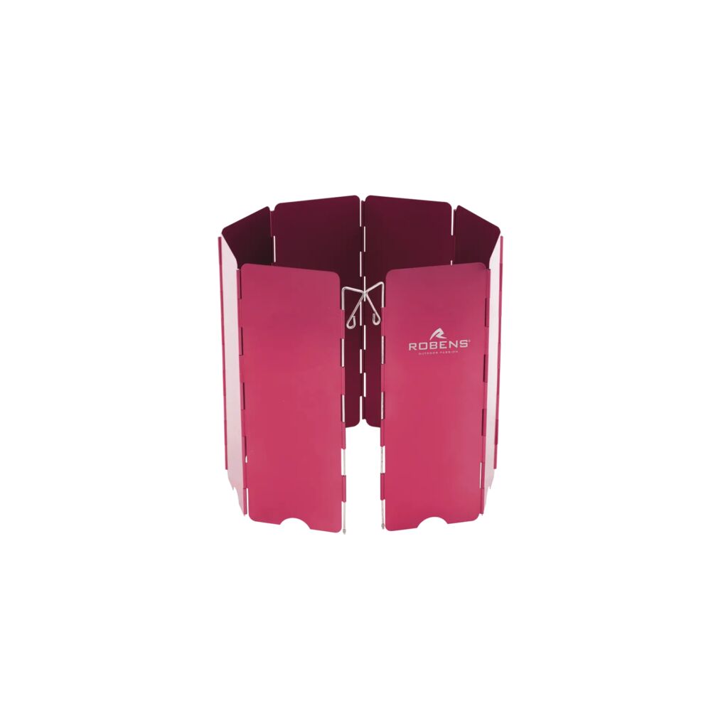 Et sammenleggbart vindskjerm for gassbrenner. Skjermen har lav vekt og er høy nok til å beskytte en brenner montert på en lav gassbeholder.