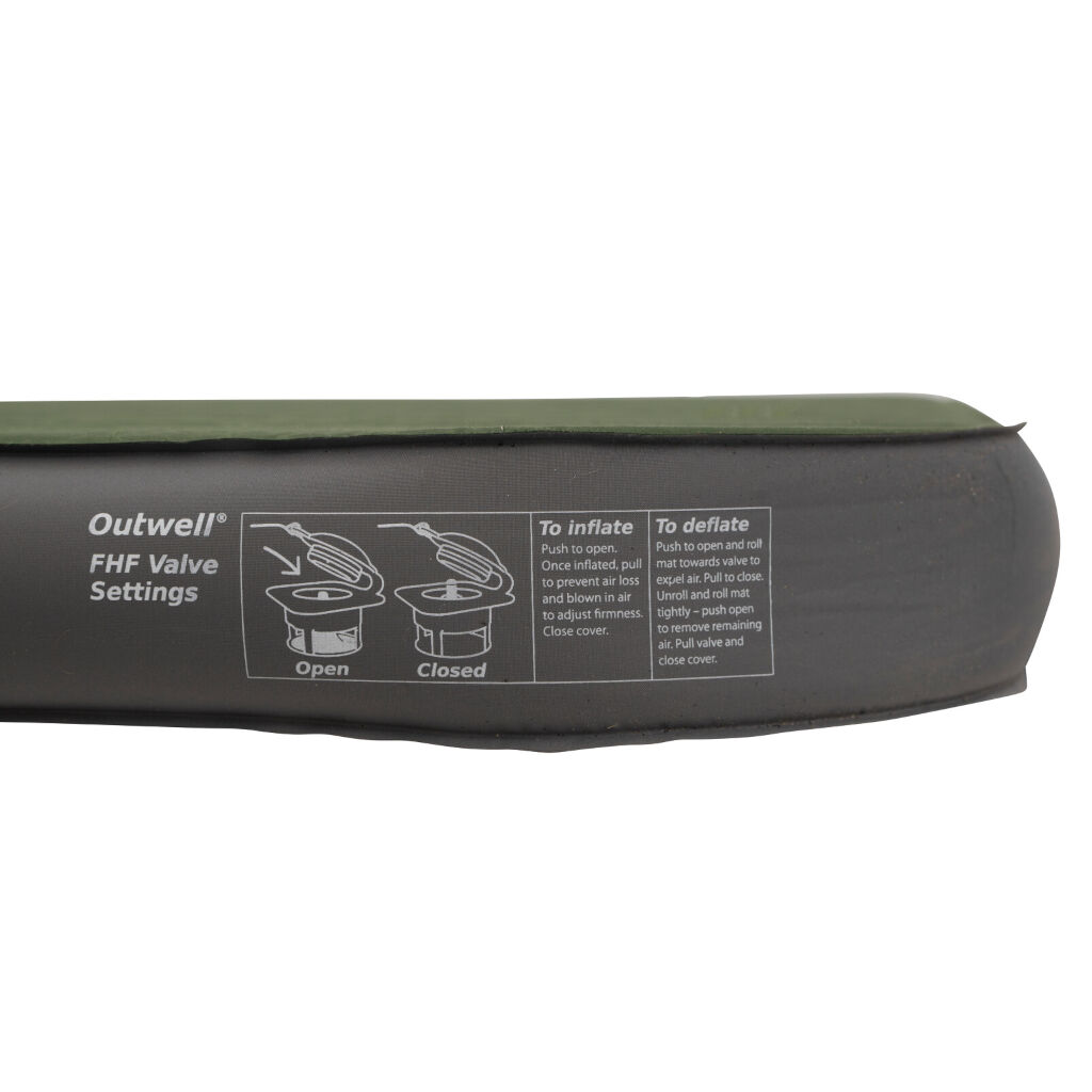 Outwells nye Flat High Flow Ventil gir en betydelig raskere fylling av madrassene enn tidligere modeller. En annen god funksjon är at det går å bruke en pumpsækk for å regulere hvor hard man vil at madrassen skal være i stedet for å måtte blåse selv.