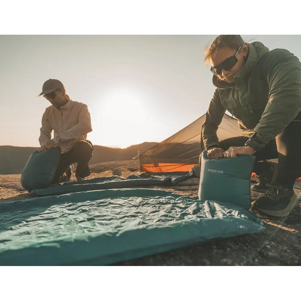 Oppblåsbart liggeunderlag i svært lett konstruksjon – fôret med tre lag folie og ideelt for bruk året rundt. Mange små luftkamre i underlaget gjør det stabilt og komfortabelt. Bæreveske samt en lett pumpepose følger med.