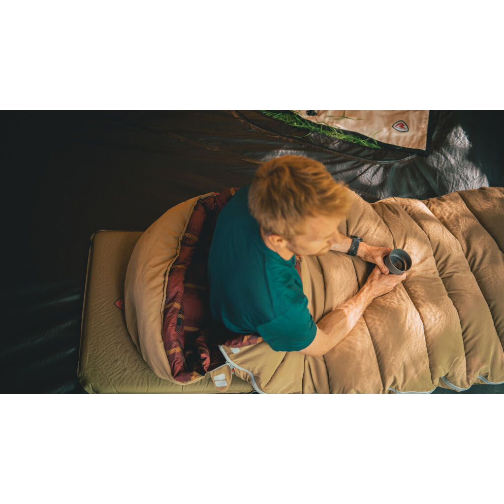 En varm, komfortabel og stilig sovepose fra Robens med klassisk design. Takket være et innerfôr i myk bomull får man en betydelig bedre følelse enn med vanlige soveposer. Helt åpen L-formet glidelås som kan åpne opp soveposen helt og bruke overdelen som et teppe.