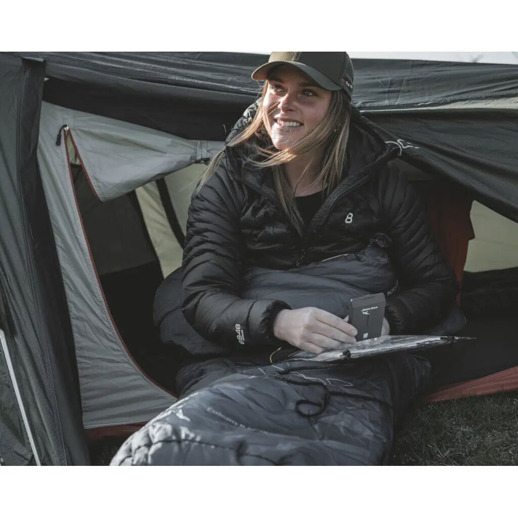Den lange utformingen gjør den ideell for høye personer, og toveis glidelåsen gjør det mulig å justere ventilasjonen etter behov. Soveposen leveres med en kompakt kompresjonspose som gjør den enkel å pakke og transportere.