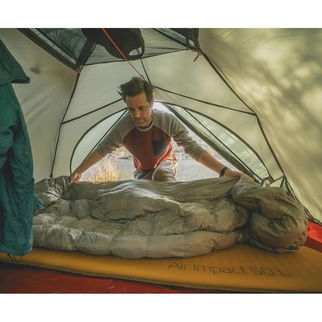 Varm og pakkvennlig sovepose som passer fra vår til høst. Robens Gully bruker en hybridisolasjon som kombinerer dun med Isofill, der oversiden har en dunblanding for ekstra isolasjon og undersiden er isolert med MicroThermo Ball Isofill som minimerer varmetap gjennom bedre kompresjon og fuktabsorpsjon.