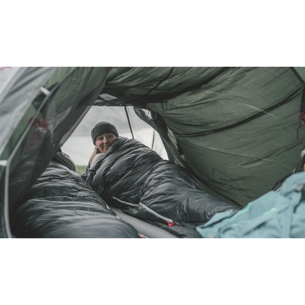 Sovepose som også klarer de virkelig kalde nettene. Andedun gir en liten pakkestørrelse på kun 30 x 21 cm. Soveposen er litt bredere enn mange soveposer på markedet, noe som gir bedre komfort.