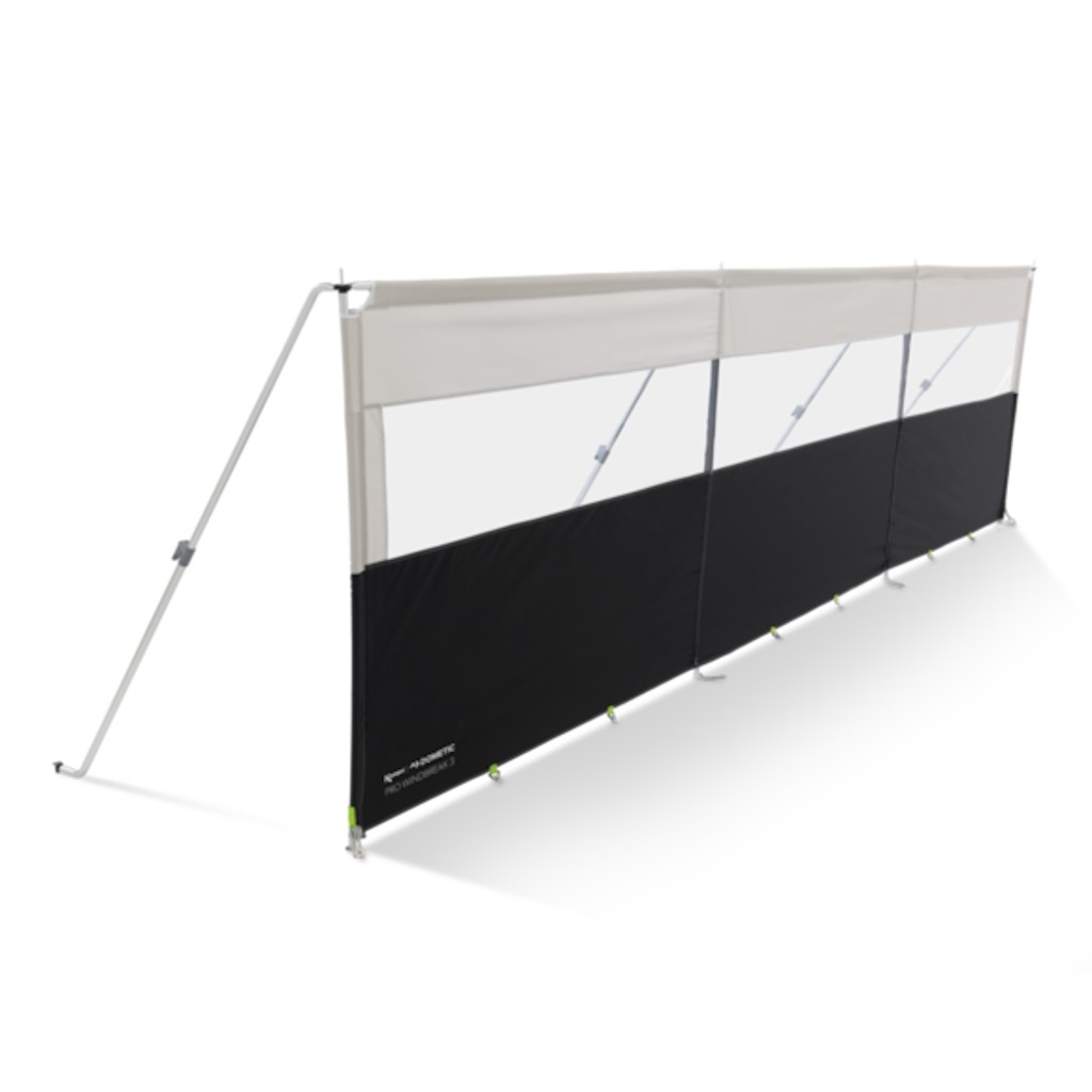 Vindskjerm i tre seksjoner med vinduer i Dometics kraftige teltduk som også brukes i deres Pro fortelt. Gjennom en aluminiumsramme med støtteben i stedet for teltliner får vindskjermen en ekstra god stabilitet mot vind. Monter flere Kampa Dometic Pro Vindskjerm sammen for å skape et større beskyttet område som kan lukkes med en glidelåsdør. Perfekt for alle hundeeiere.