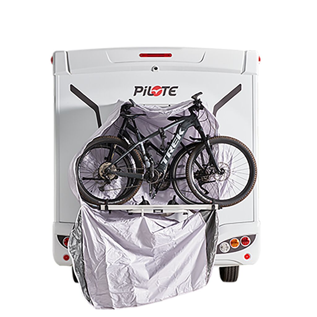 Sykeloverdrag for 1-3 sykler med sydd lomme for varselskilt og spennbånd for enkel feste. Stoffet har ripstop og er vannavvisende.