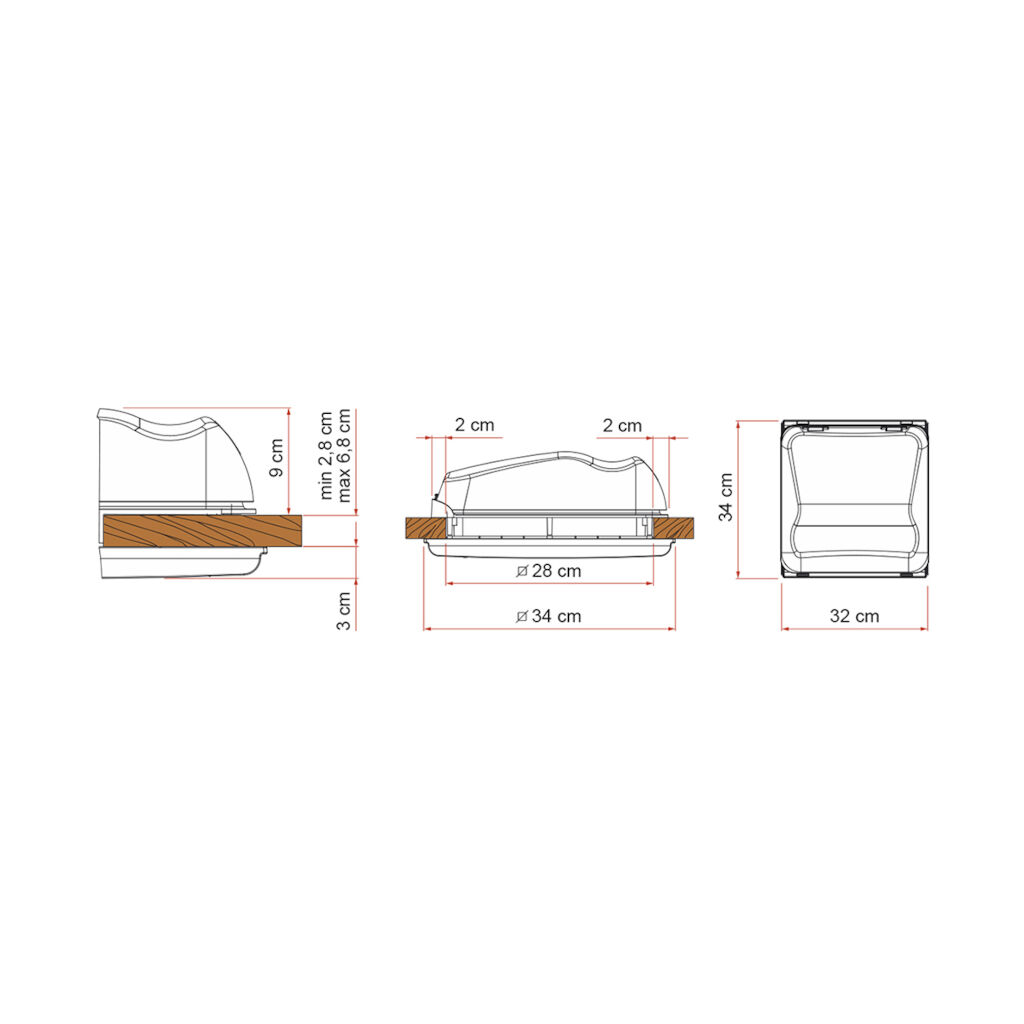Bestselgende takluke fra Fiamma med aerodynamisk design som holder lydnivået nede ved høyere hastigheter. Kan monteres i tak med tykkelse fra 2,8 cm til 5 cm.