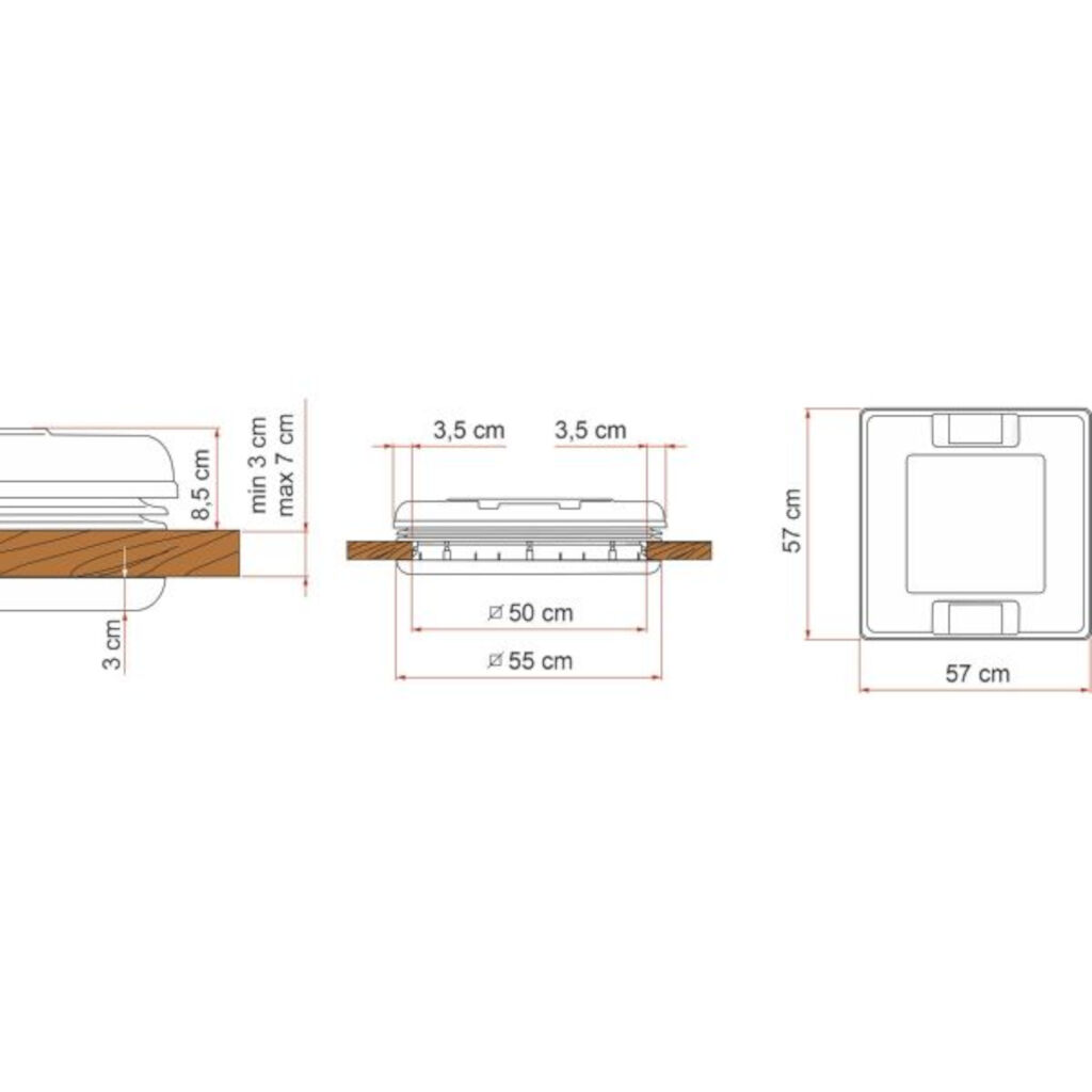 Elegant takluke med standardstørrelse 50 x 50 cm. Takket være den lave designen holdes lydnivået nede selv ved kjøring i høyere hastigheter. Luken kan åpnes fra alle fire sider. Den brede, forsterkede rammen gjør at den kan erstatte takluker med mål fra 50 x 50 til 53 x 53 cm. Laget av kraftig og UV-bestandig plast.