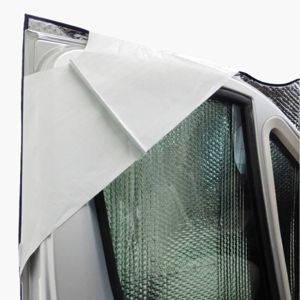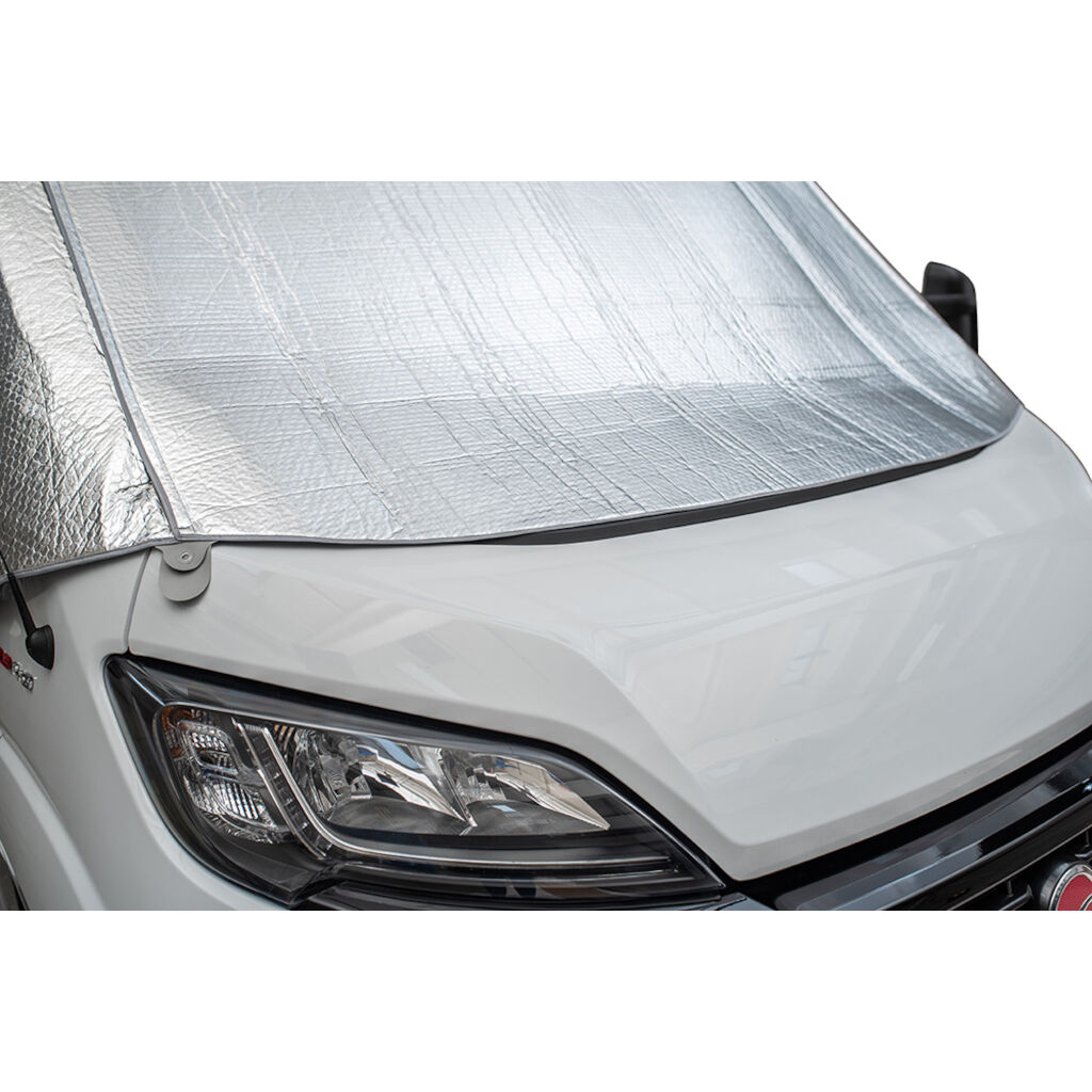 Isolerende vindusmatte tilpasset for bobiler.  Om vinteren isolerer den mot kulde og om sommeren stenger den ute sollys og holder varmen nede. Monteres over dørene på bobilen samt med elastiske bånd ned mot skjermen og foran.