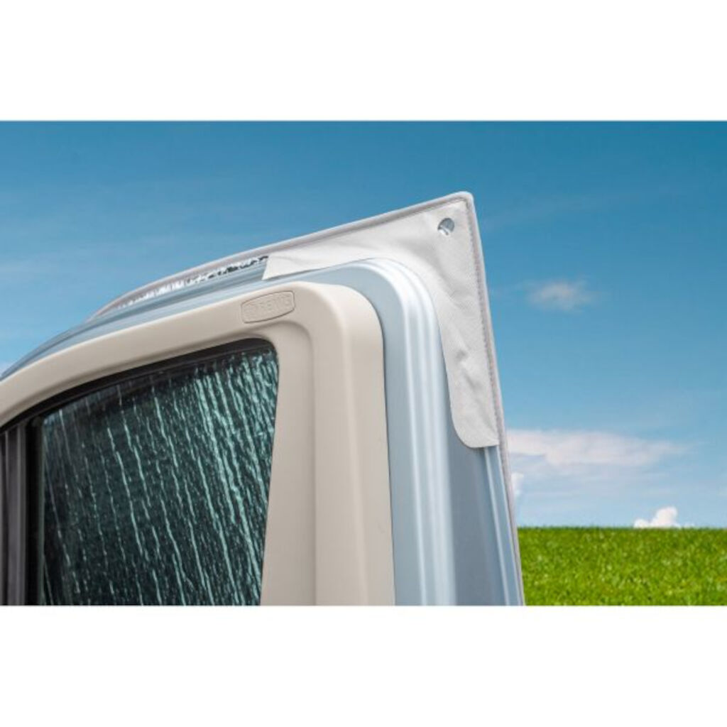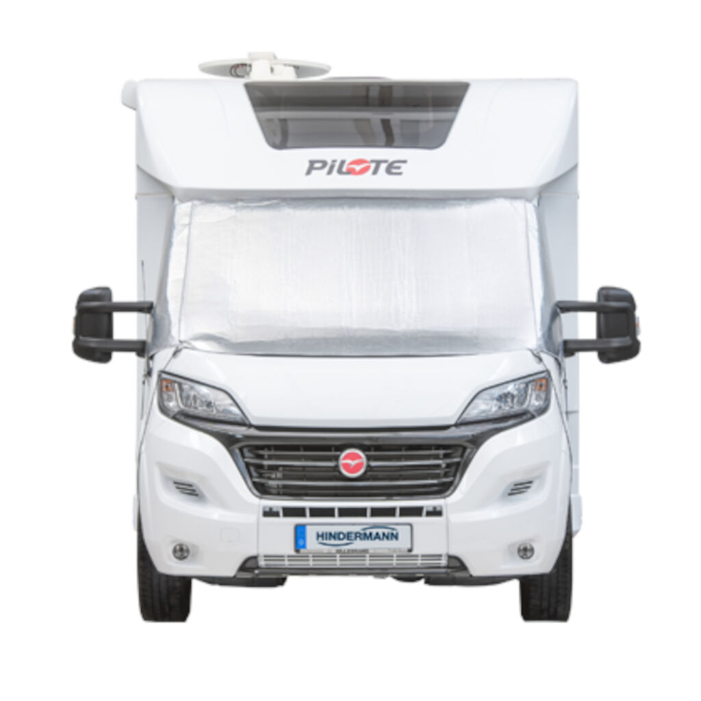 Isolerende vindusmatte tilpasset for bobiler. Om vinteren isolerer den mot kulde og om sommeren stenger den ute sollys og holder varmen nede. Monteres over dørene på bobilen samt med elastiske bånd ned mot skjermen og foran.