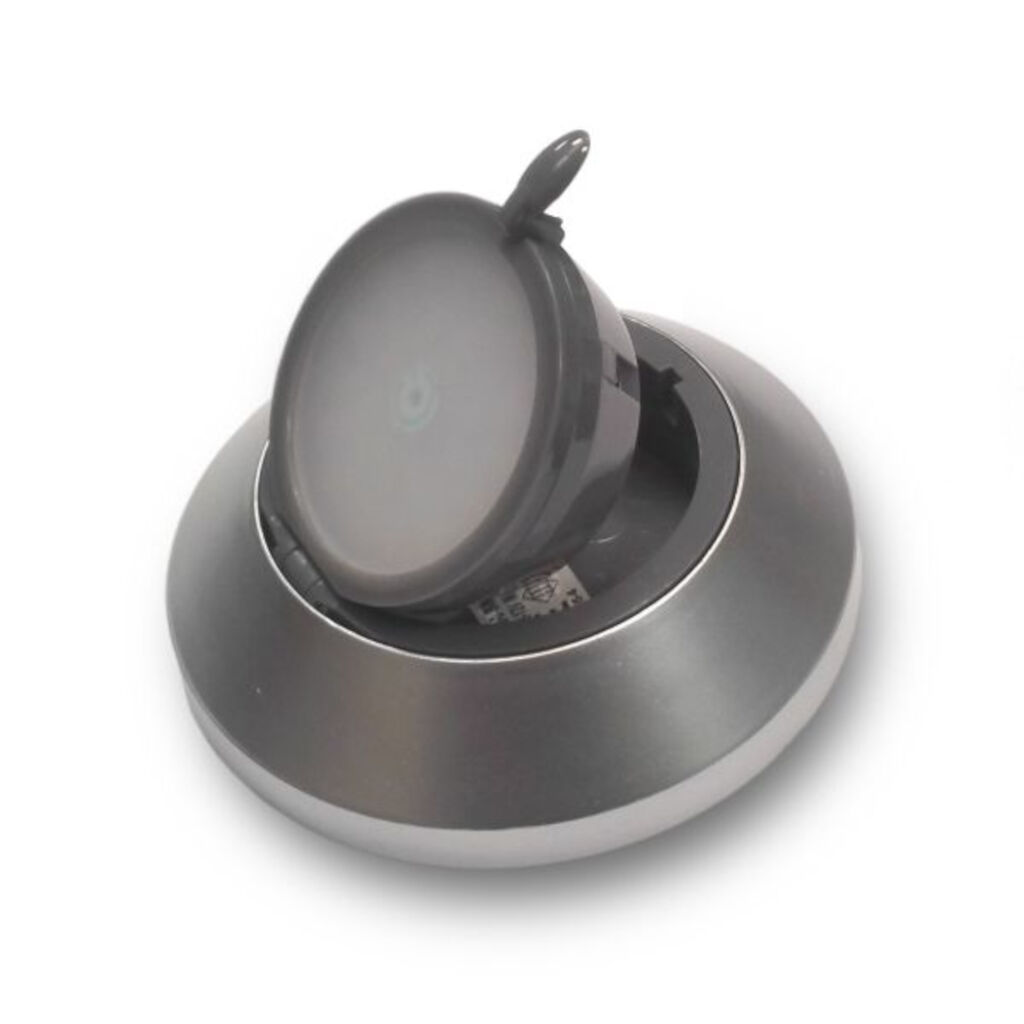 Utenpåliggende spotlight for campingvogn og bobil med berøringsknapp. Lampen kan brukes både som spotlight og leselampe. Roterbar og vippbar. 12V.