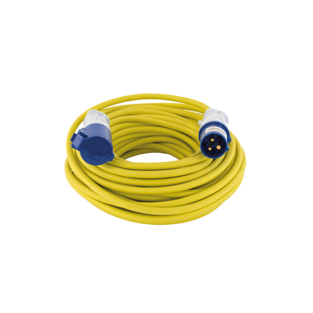 Tilkoblingskabel for campingvogn og bobil for 230 V/16 A på 25 m. CEE-kontakt for tilkobling (hann/hunn).