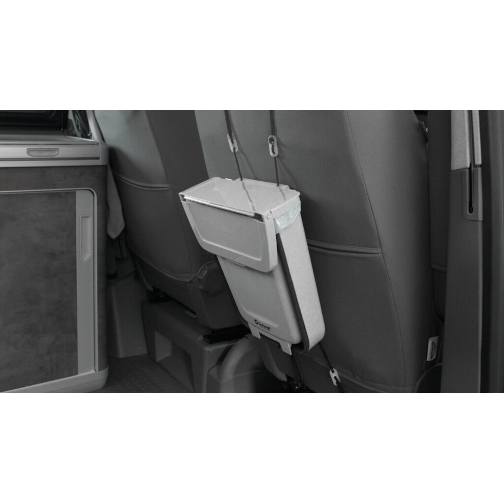 Praktisk og sammenleggbar søppelbøtte på 8 L som kan festes mot dekk, ryggstøtte, m.m. takket være de medfølgende monteringsremmene og krokene.