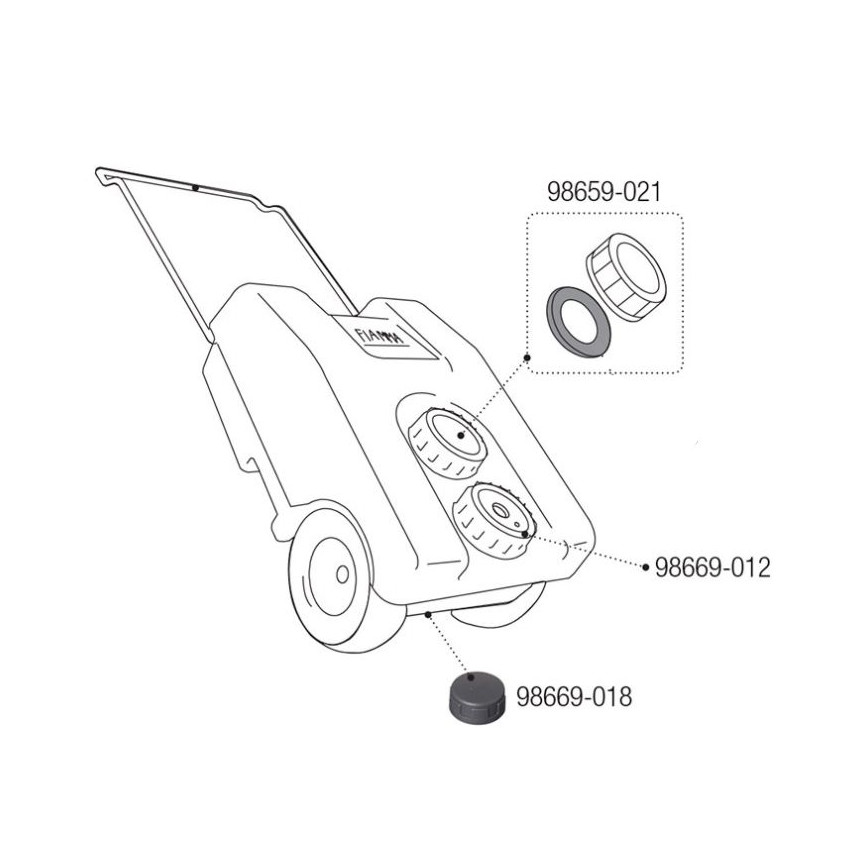 - 98659-012: Lokket med bunn med hull for slange (23F)