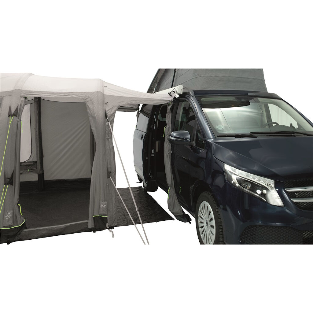 Outwell Newburg 240 Air er et biltelt med luftkanaler fra danske Outwell. Teltet er ekstremt lett å montere og reise, og passer biler med en høyde mellom 175 og 200 cm til taket, takrails eller kederlisten. Fest bare teltduken i bakken med slusen mot bilen, pump opp de i teltduken integrerte kanalene som danner rammen på teltet. Fest deretter teltet via kederlisten på bilen, mot taket eller med liner over bilen. Den eneste stangen er den som sitter over det lille beskyttelsesområdet ved åpningen foran.