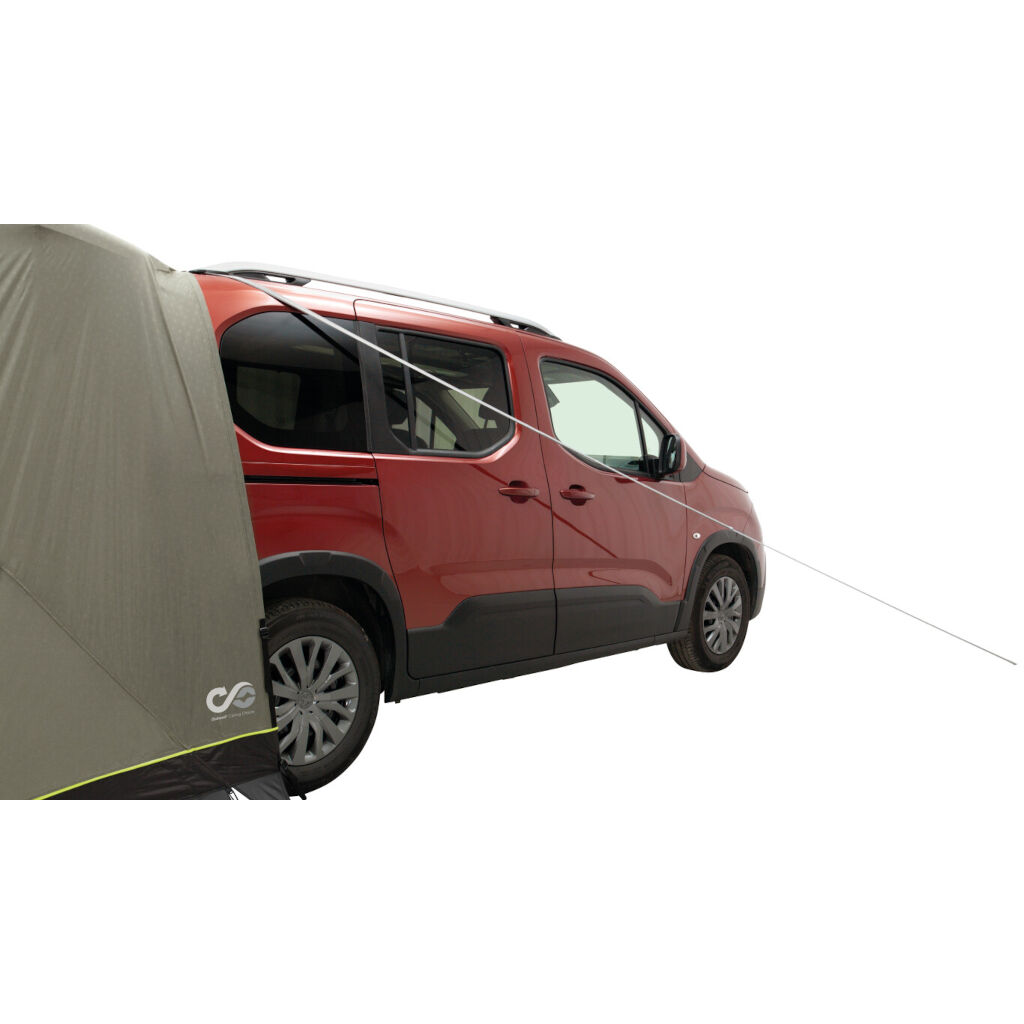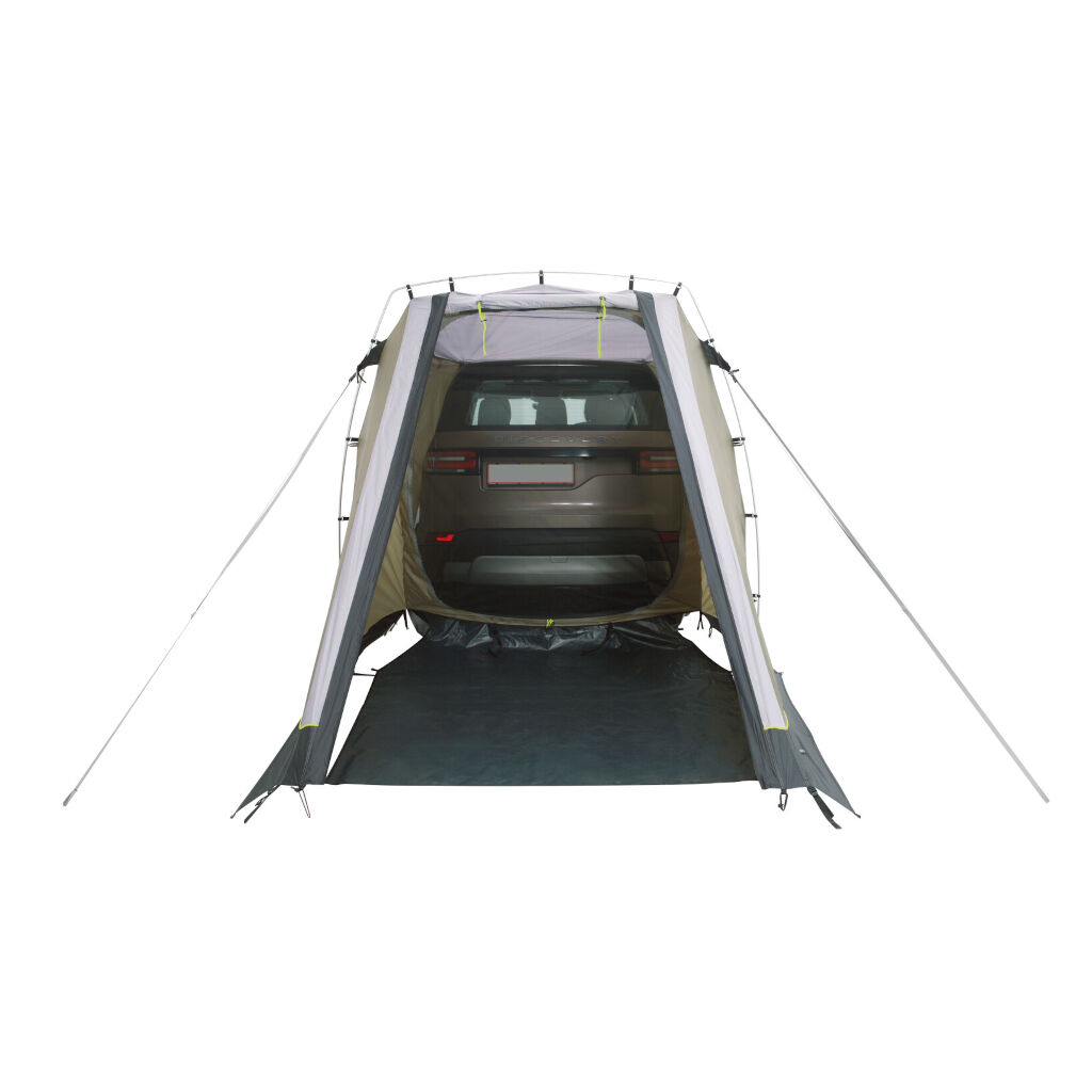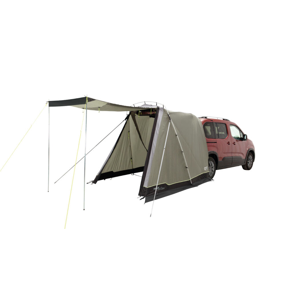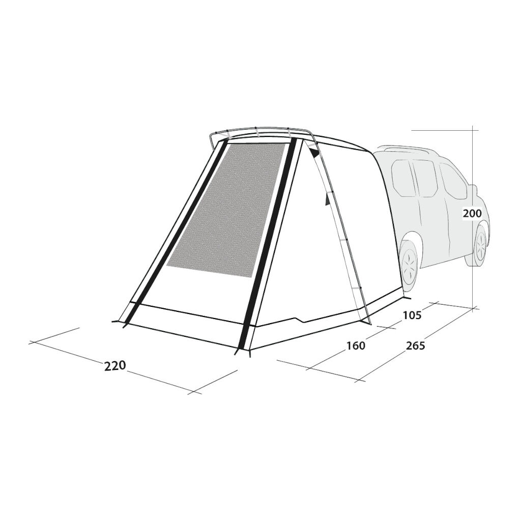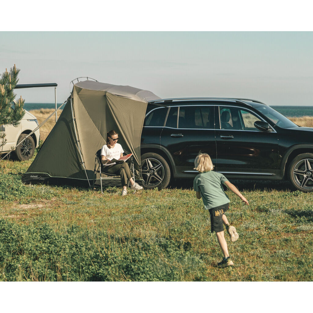 Gi bilen et ekstra rom for utstyr, matlaging eller for å sitte i. Outwell Sandcrest er et veldig lett, slitesterkt og raskt oppsett campingbil telt som festes mot bilens bakside. Med kun en aluminiumsstang er det enkelt å montere og tar nesten ingen plass i bilen. Teltet festes via Outwells kjøretøy festesystem og krever ingen vulstband/kederlist. Festesystemet gjør at du kan bruke de bakre dørene uhindret, selv når teltet er montert. Teltet passer de fleste biler med en høyde mellom 155 og 185 cm. Det har en stor dør som også kan strammes opp som soltak (tilbehør kan kreves) gjør det enkelt å åpne opp på varme dager. Den skrå åpne mellomveggen i mesh gjør at man kan sove i bilen med bagasjeluken åpen beskyttet mot småkryp. Perfekt under varme netter eller for å holde temperaturen nede i bilen om morgenen.