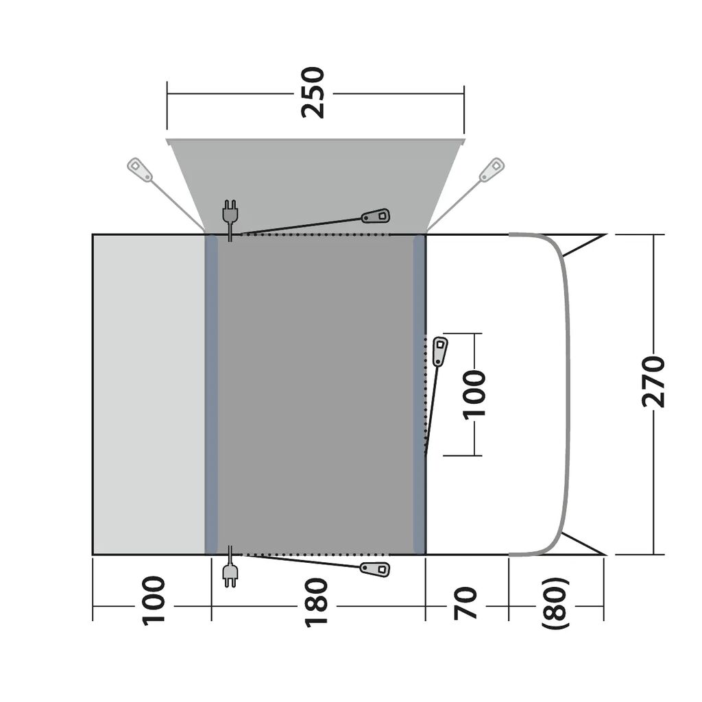 Teltet er klargjort for en sovekabin for to personer. Perfekt for barn eller for å frigjøre mer plass i bilen.