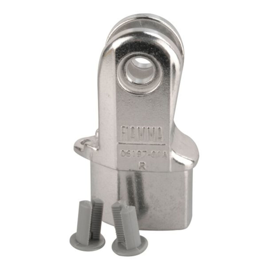 Feste (gaffel) for ben til Fiamma markise F45S, F65, F65S, F65L, F70, F80L og F80S. Velg høyre eller venstre side sett fra at man ser mot campingvognen eller bobilen. F45S, F65, F65S, F65L, F70, F80L og F80S.