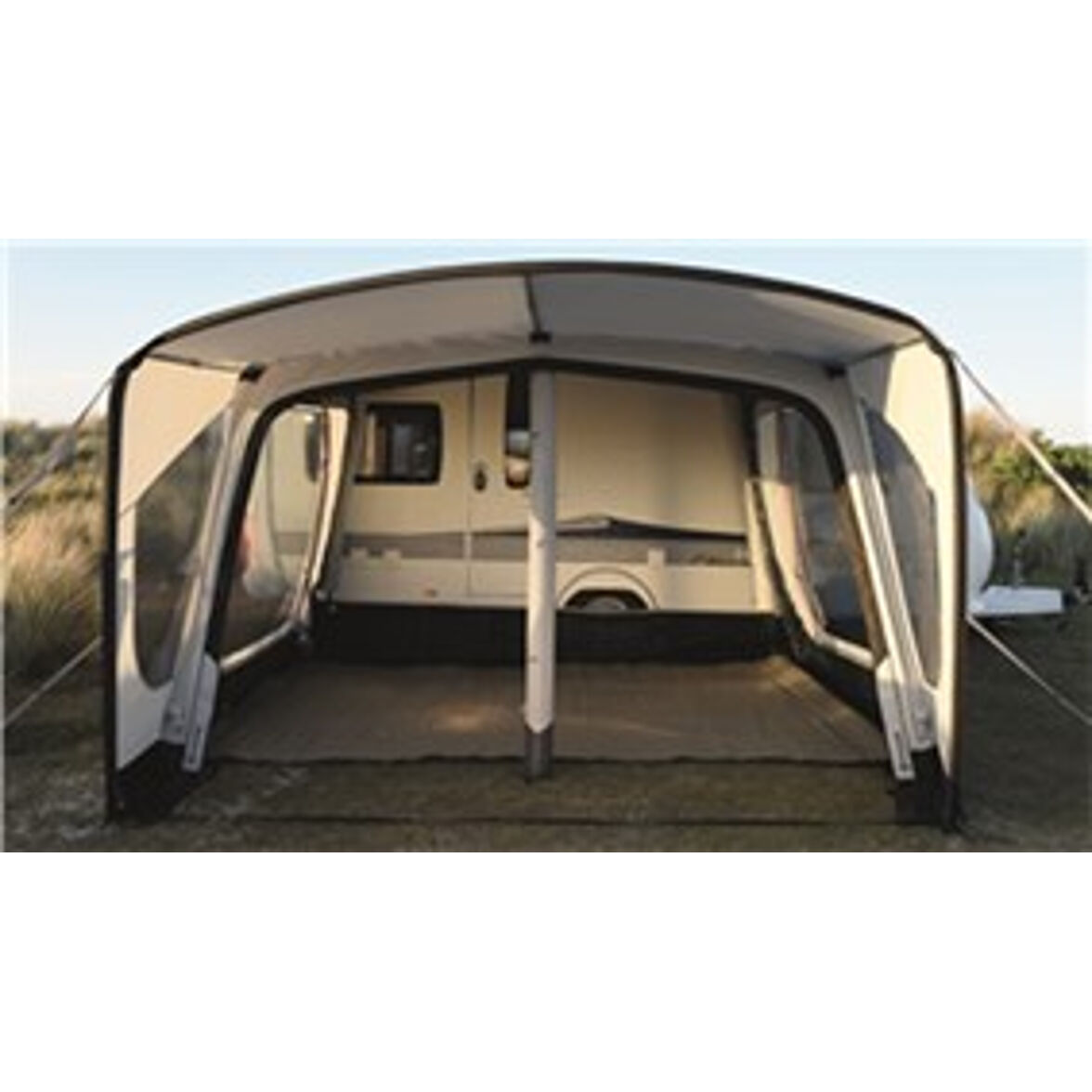 - Dragskydd mot husvagnen förhindrar vind och kryp från att komma in i tältet under vagnen