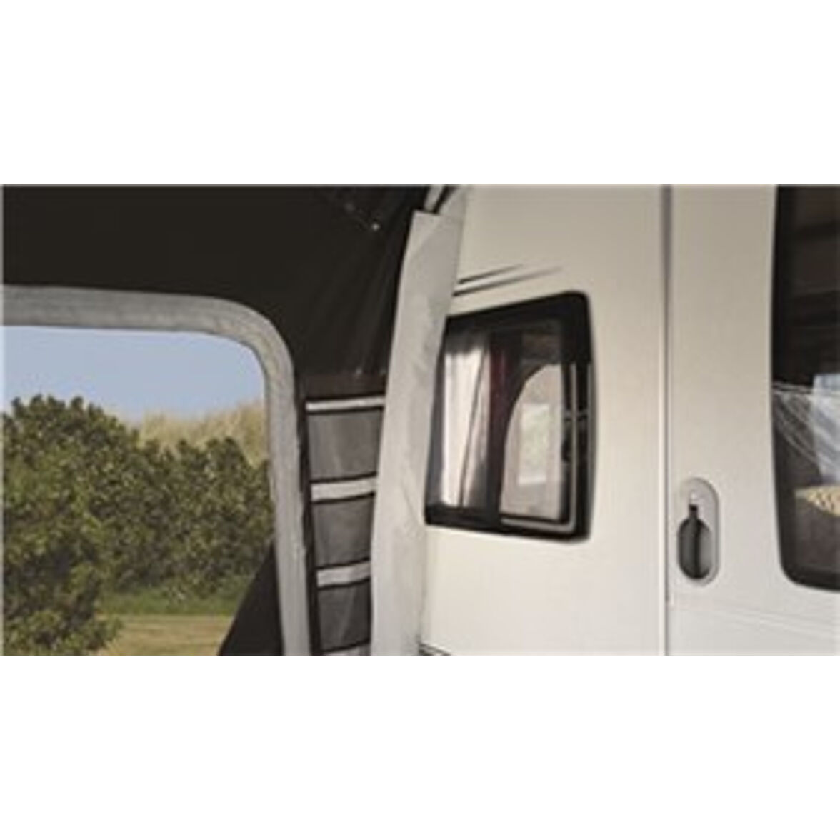 - Tätning mot husvagnen utan stänger som även fungerar mot fönster (kuddar mot fönster med högre kant finns som extra tillbehör)