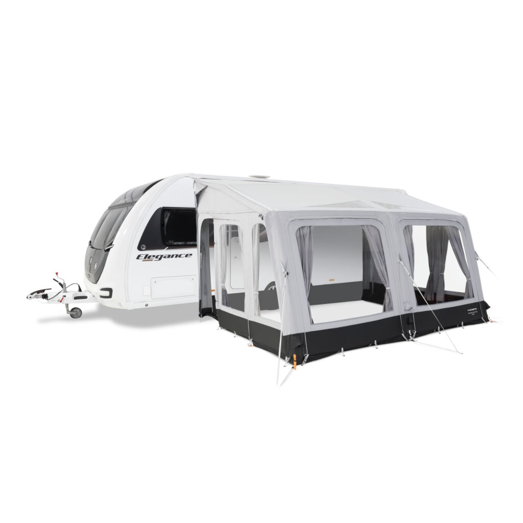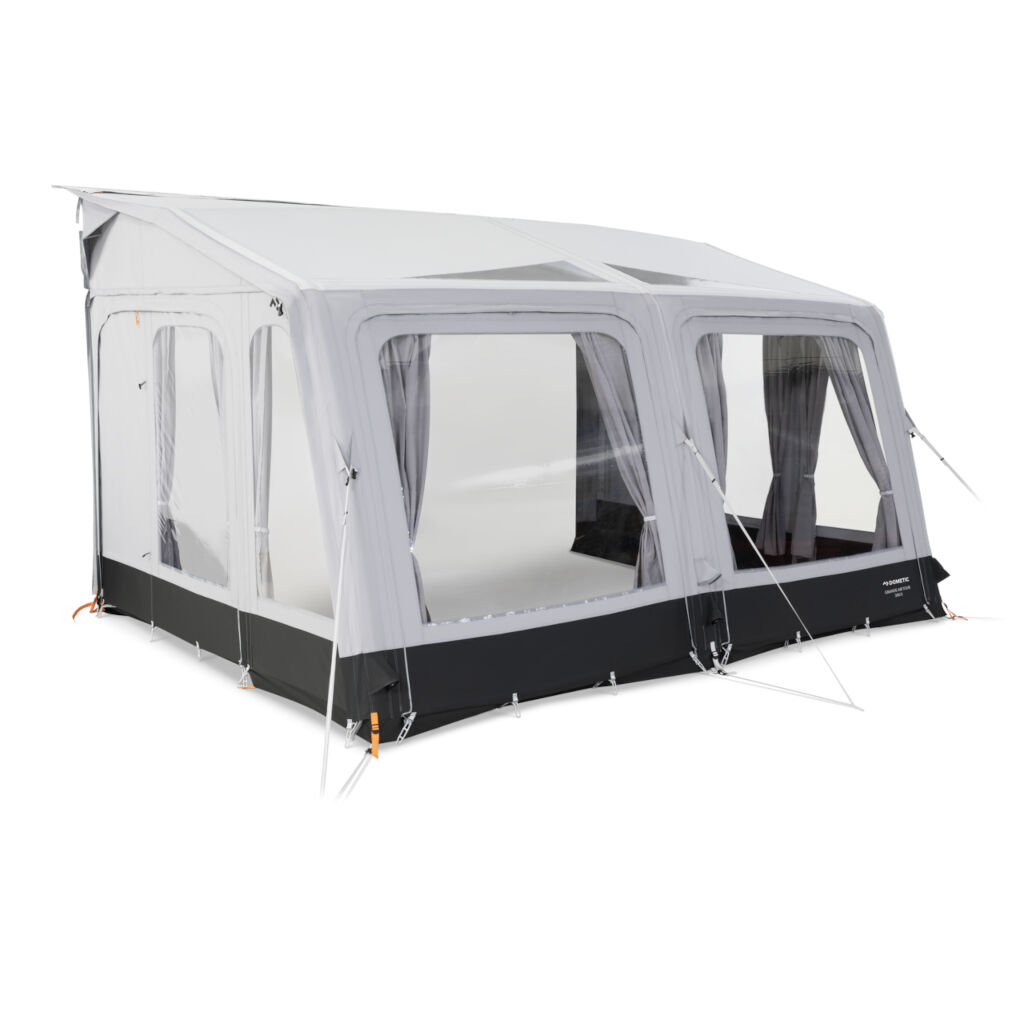 Dometic Grande Air Tour 390 (tidligere Kampa Grande 390) är et veldig lyst og romslig luftfortelt med en dybde på 300 cm. Dybden i kombinasjon med vinklete luftkanaler og store vinduer gir en fantastisk komfort under campingferien. I tillegg er det virkelig raskt å sette opp. Fest teltduken i teltlisten på campingvognen eller i listen på bobilens markise, pump opp de i teltduken integrerte kanalene og fest tetningen mot campingvognen/bobilen i bakken så står teltet klart. Raskt, enkelt og komfortabelt.
