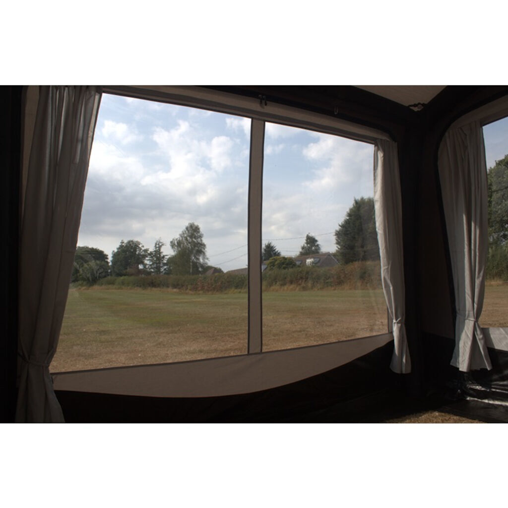 Campingvogn: Campingvognen trenger en rett del av listen som er 260 cm. Hvis den ene siden av teltet havner over et vindu eller en luke, kan det tettes med hjelp av stenger (inngår ikke).