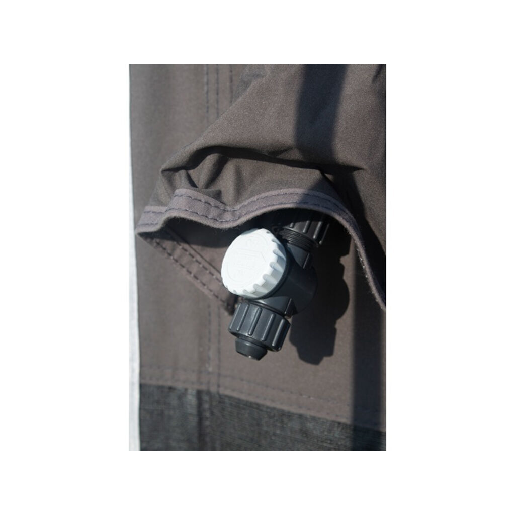Telta Scenic 390 har to kederlister på 5 og 7 mm, noe som gjør det kompatibelt med både campingvogner og bobiler. Doble glidelåser øverst på sidene gjør det svært enkelt å justere høyden ved å åpne én eller begge glidelåsene.