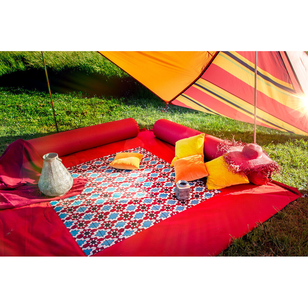 Skap et komfortabelt område under markisen eller inne i teltet med dette flotte teppet fra Bent. Siden teppets kanter er utstyrt med glidelås, kan du feste både vindskjerm og puter til teppet. Oversiden er laget av børstet Nylex som er slitesterk og gir høy komfort. Undersiden er utstyrt med PVC-laminering som gjør den vanntett og lett å rengjøre.