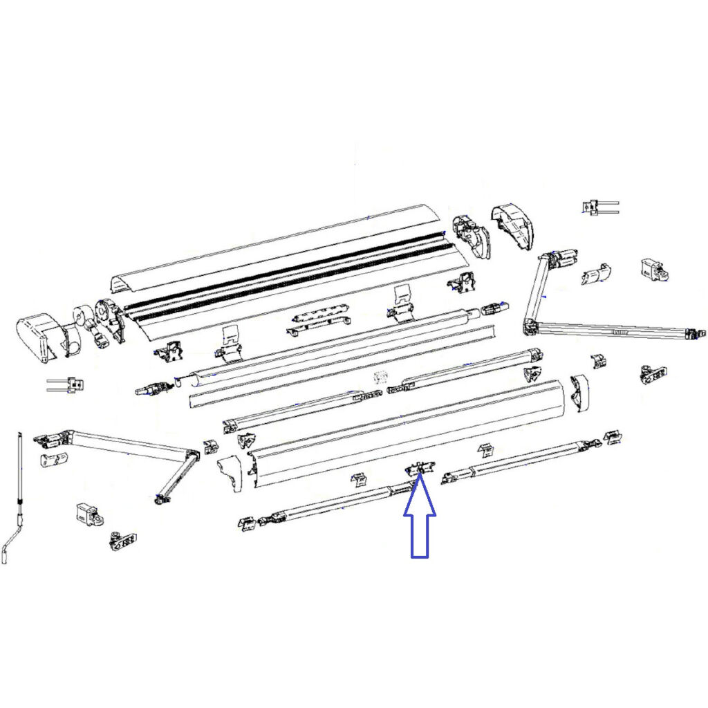Bytt ut et ødelagt feste for støttebenet i midten på din Thule Omnistor 6300 markise. Monteringsskrue følger med i festet.